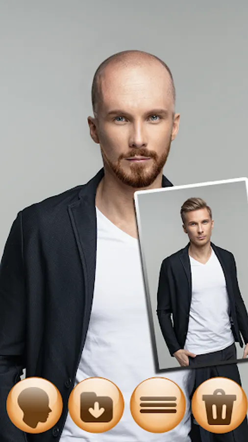 Have a bald head or a clean shaven hairstyle and look really cool! Shave your head and your beard and look 20 years younger! Or place men hairstyle stickers for pictures and completely change your appearance!