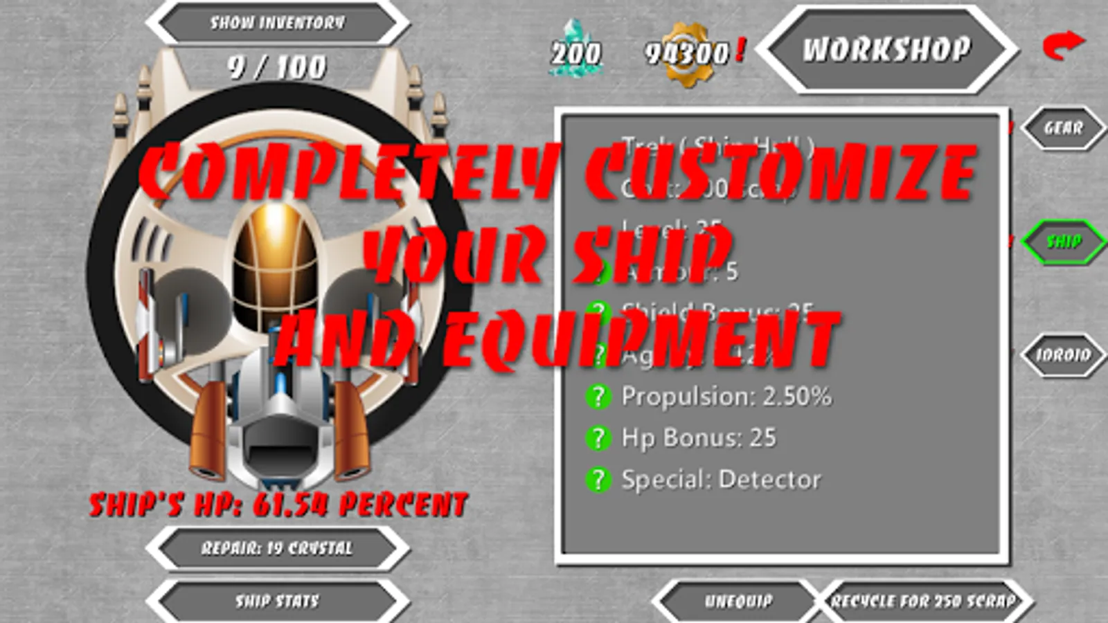 Space Exploration: Fly your customized spaceship throughout open space, battling aliens while dodging asteroids and gathering hard-earned loot.