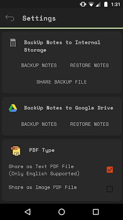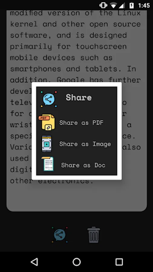 ⚙ Save and Share notes in various formats (Text, PDF, Image)