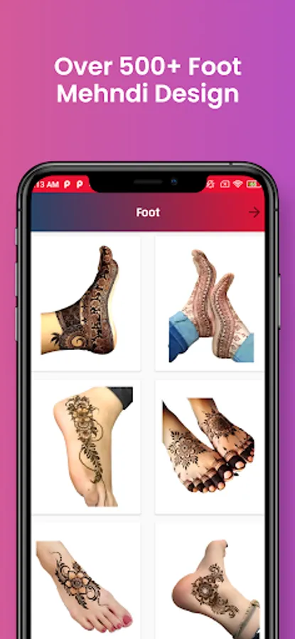 Don't forget to add a touch of mehndi magic to your feet. Our app features an array of foot mehndi designs that will make your feet look like a work of art, whether you're celebrating a special event or just want to pamper yourself.