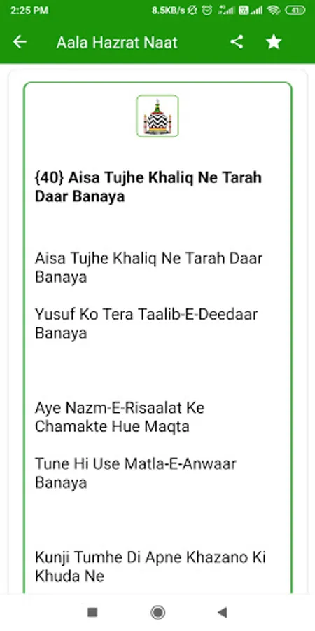 so guys hamne is app Aala Hazrat Naat Hindi me bahut sari naato ko shaamil kiya hai hindi me aap is app ko download karke asani se use kar sakte ho, Aala Hazrat Hindi app apke liye bahut helpfull hone wali hai is app ko hamne poora hindi me banaya hai aap hindi me is app ko asani se pad sakte ho, Naat Shareef Hindi app best app hone wali hai, guys agr aapko Naat Shareef app ko use karne me koi problem dekhne ko mile to aap hamse problem share kar sakte ho.