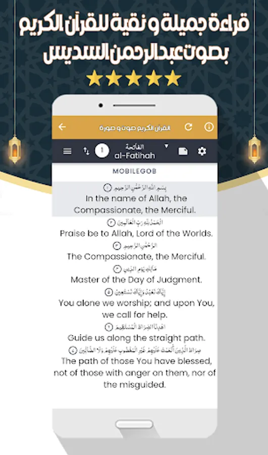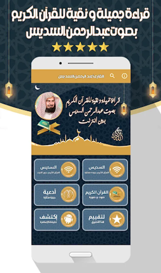 The application of the Noble Qur’an Abdul Rahman Al-Sudais allows you to hear all the surahs of the Noble Qur’an in addition to supplications through your mobile phone or device