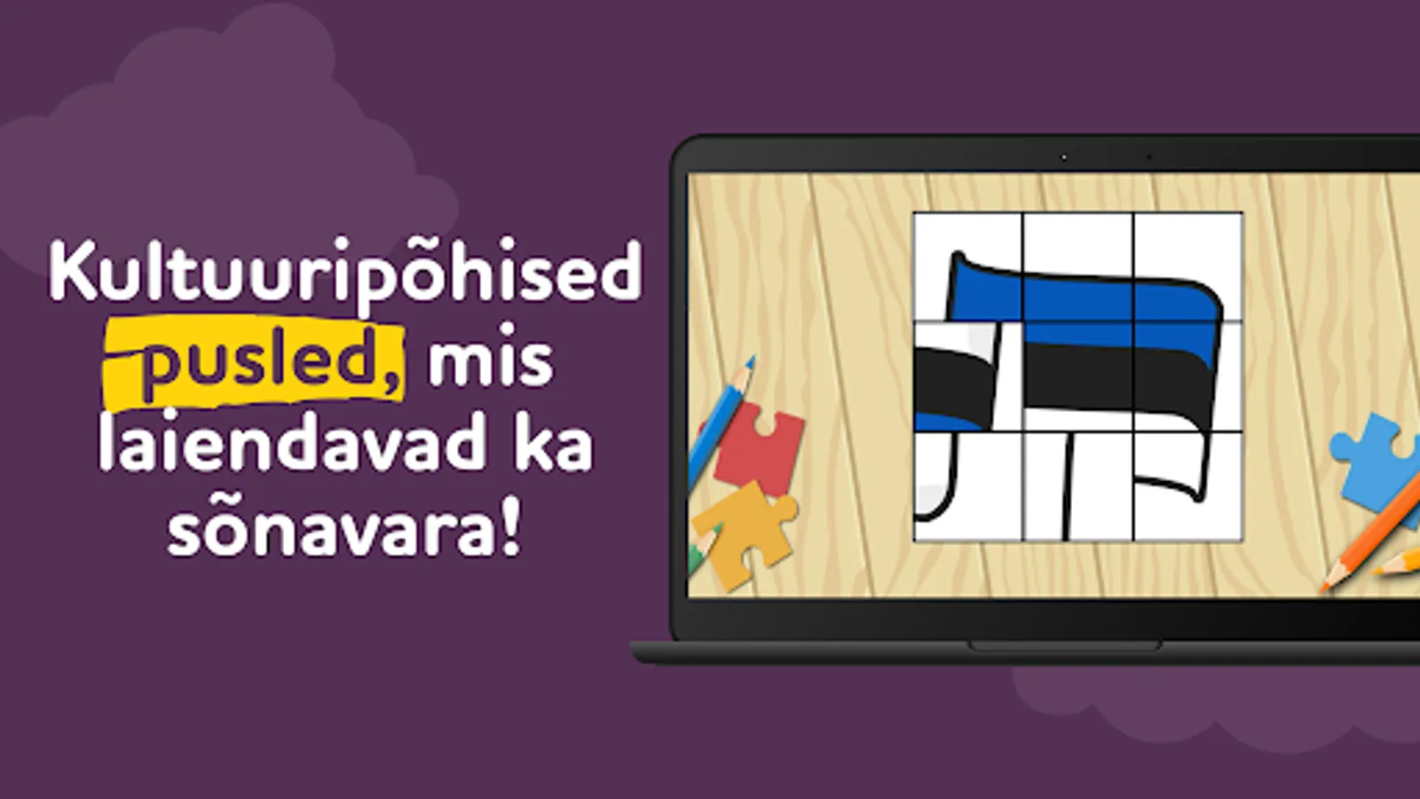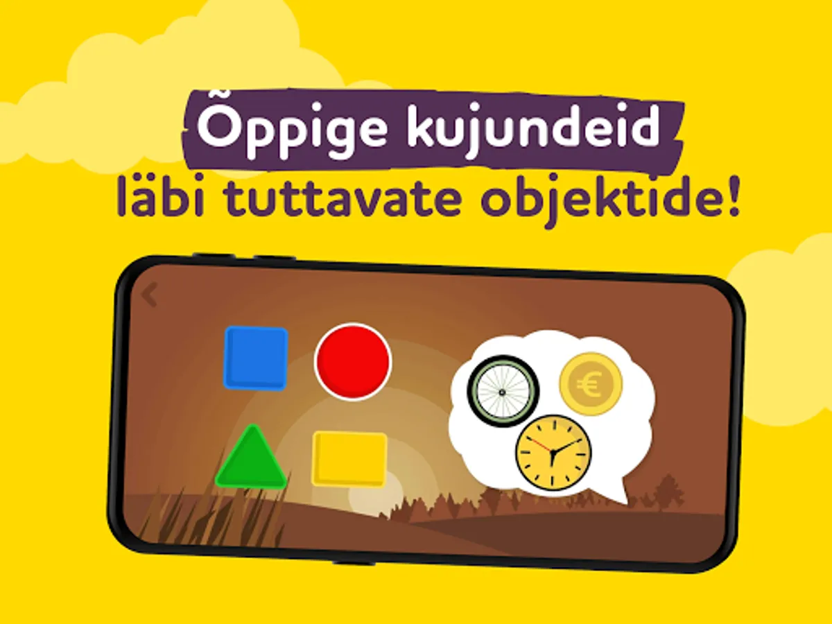 ⭐ teaches through the objects of the Estonian culture and local nature (e.g. blue as a cornflower, rectangle as the Estonian flag);