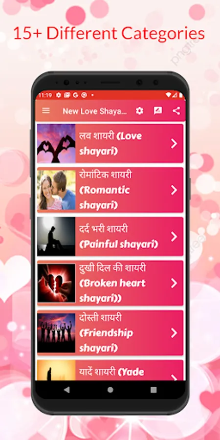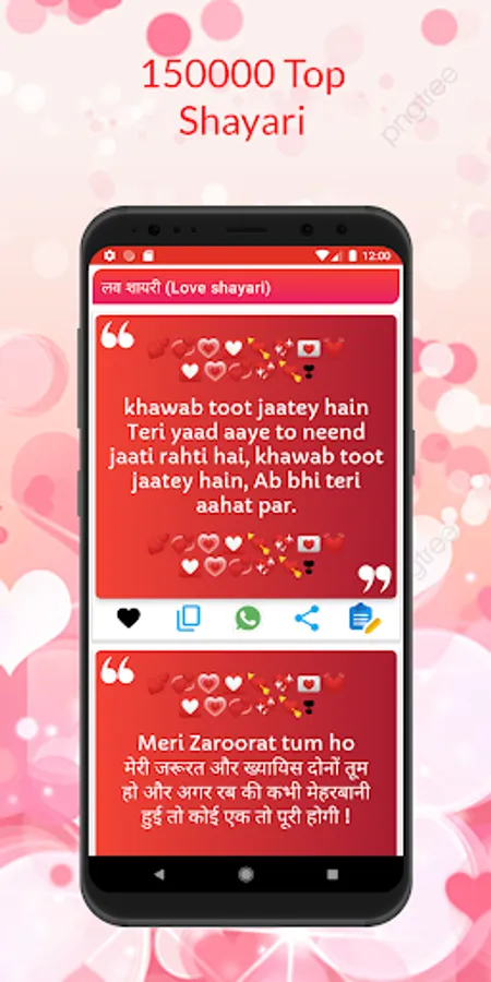 You can express your love in Shayari and you can send your favorite or any other best Shayari to your favorite person. This app has all love Hindi Shayari with easy to use interface and the best UI. This app has the best Shayari available in Hindi you can share or copy your Shayari with just one click. We update this app regularly and now at this time, this app has 12,000 romantic love Shayari and sad Shayari in Hindi.