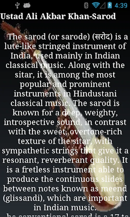 Ustaad Ali Akbar khan often referred to as Khansahib or by the title Ustad (master), was a Hindustani classical musician of the Maihar gharana, known for his virtuosity in playing the sarod. Ustad Ali Akbar Khan was son and disciple of the Great Ustad Alladiya Khan of Maihar Gharana, Which has the strong musical lineage from even The Great Taansen in 16th Century. Khan was instrumental in popularising Indian classical music in the West, both as a performer (often in conjunction with Sitar maestro Ravi Shankar), and as a teacher. He established a music school in Calcutta in 1956, and the Ali Akbar College of Music in 1967, which is now located in San Rafael, California and has a branch in Basel, Switzerland. Khan also composed several classical ragas and film scores.He was a Distinguished Adjunct Professor of Music at the University of California, Santa Cruz.