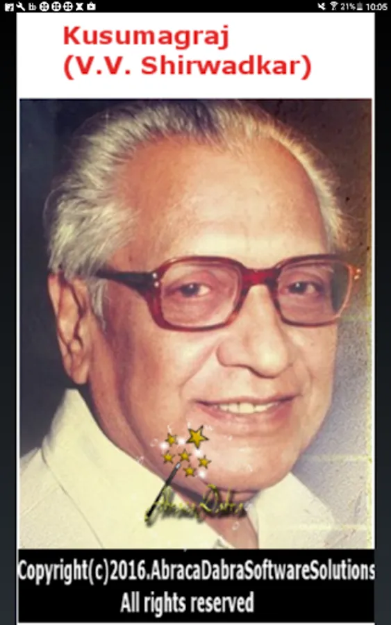 This app is an humble effort to grab all the work of the great Kusumagraj and present it to his fans and followers.