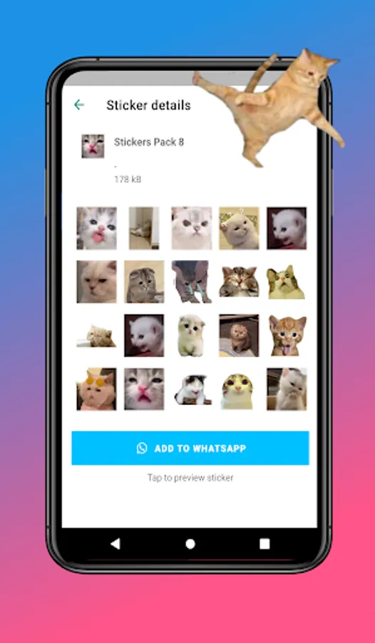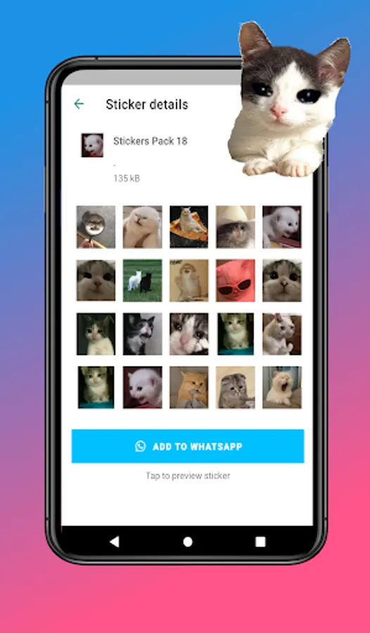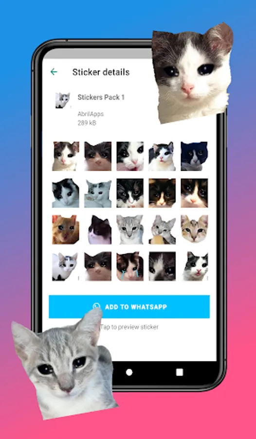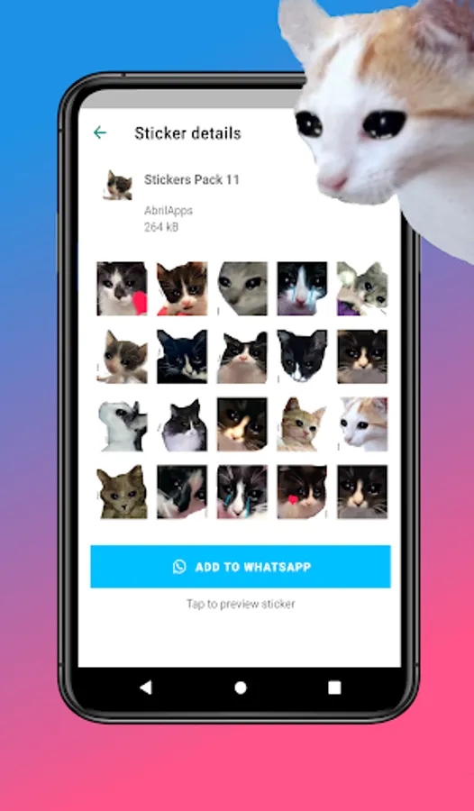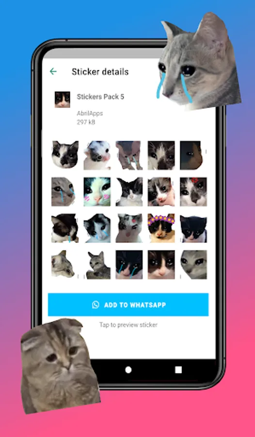 The cutest cat stickers (WAStickersApps), Do you like cute cats? find in our application the best stickers of memes and cats for whatsapp, have fun sending it to your friends. Get the best cat stickers to send WhatsApp to your loved ones.