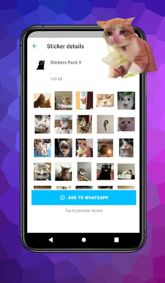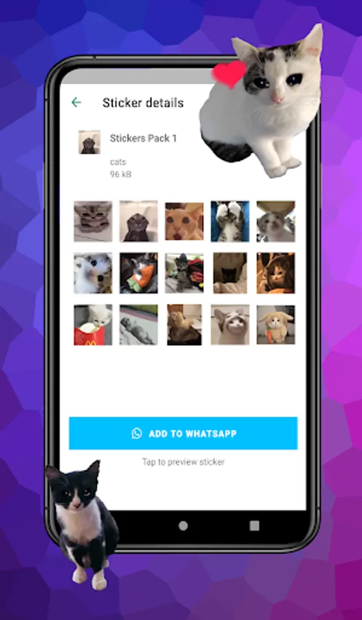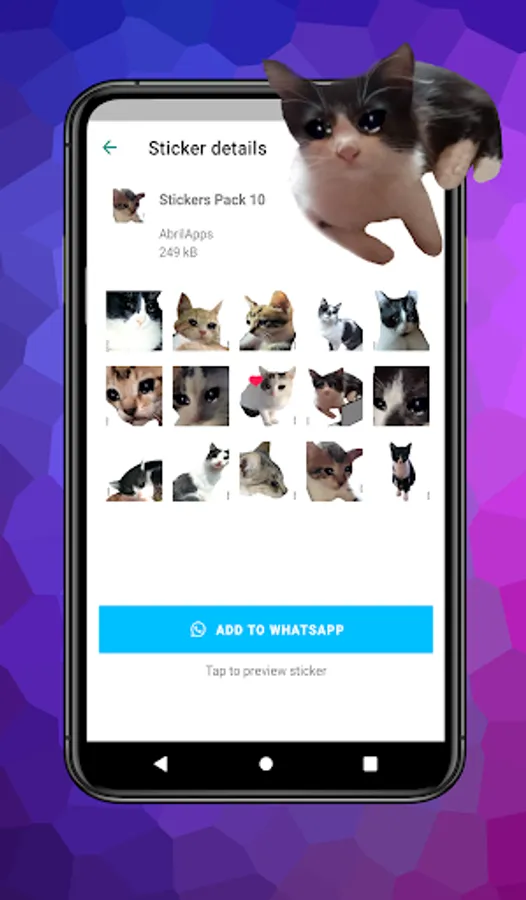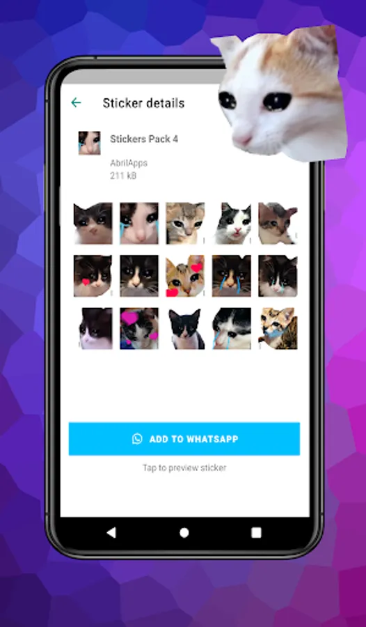 Download the funniest cat meme stickers for WASticker, beautiful cats, love cat stickers, cute kitties, famous cats and cat emojis.