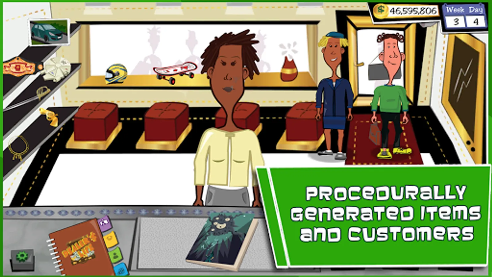 • Manage your pawn shop’s features: keep track of your inventory, position in town, maximum number of customers per day and many more