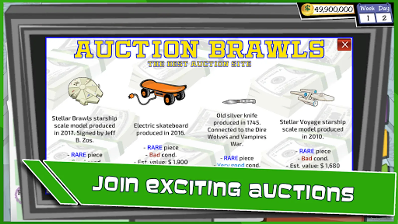 Try to amass enough money to transfer to a new pawn shop with a better look and better city placement: your daily number of customers will surely grow! And keep your inventory full of items, collecting legendary items to attract even more customers!