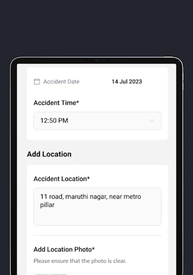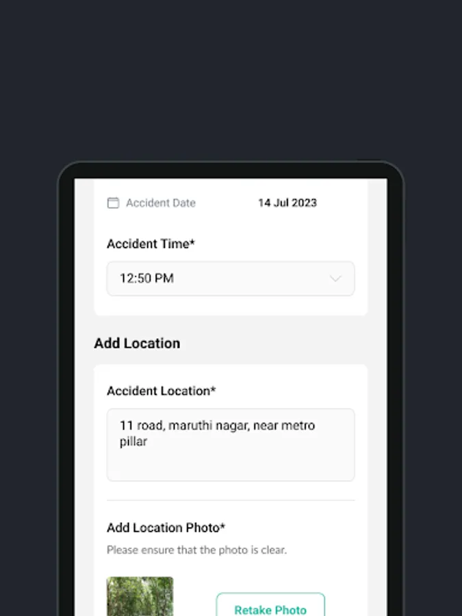 -Location Services: Automatically capture and include the accident's precise location, ensuring accuracy in your report.