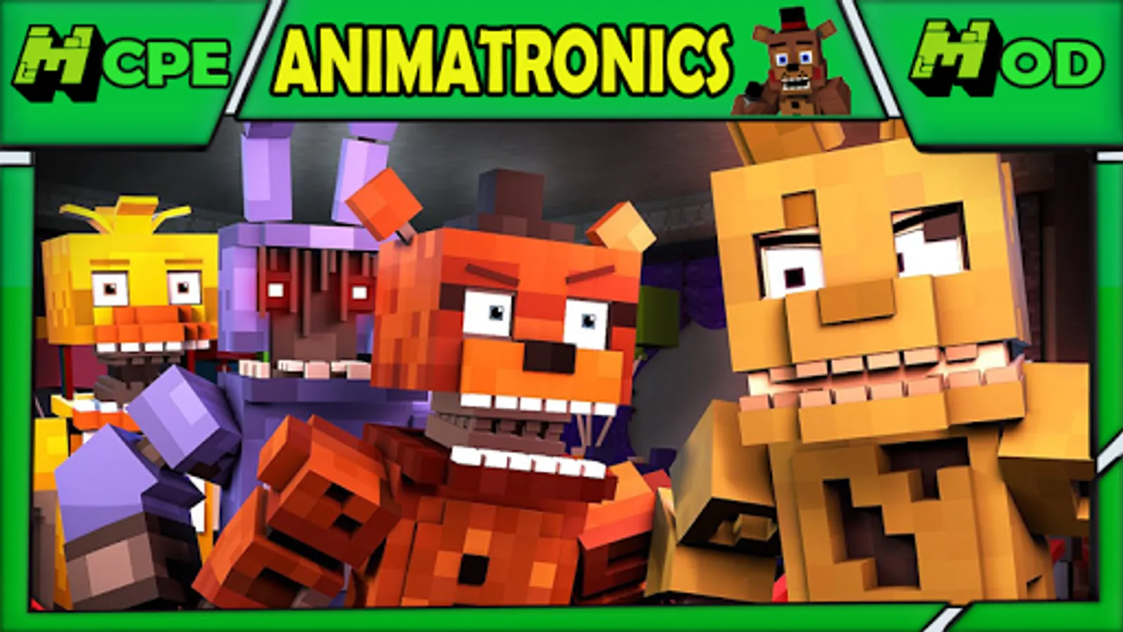 📖 Who played the game five nights at freddy's 4 probably remembered the bloodthirsty animatronics with their terrible appearance. We suggest call to mind them and adding them to the Minecraft world. Freddy fazbear and other animatronics are very hostile against you .In the Fnaf 9 add-on you will find a map and mods for Animatronics.