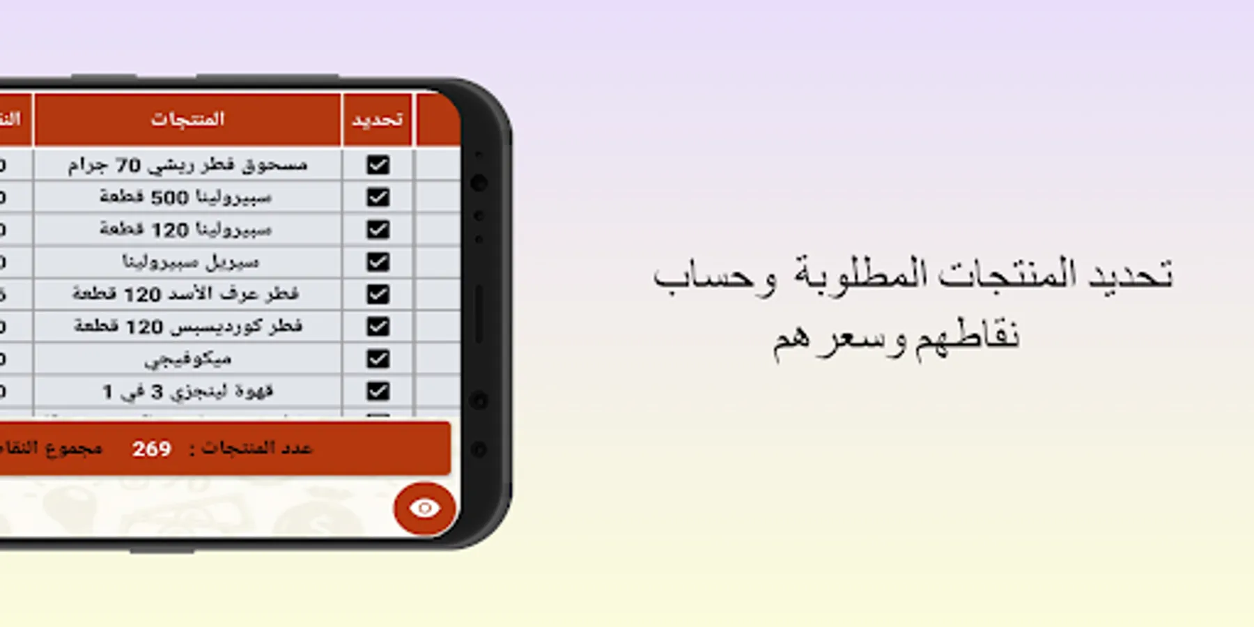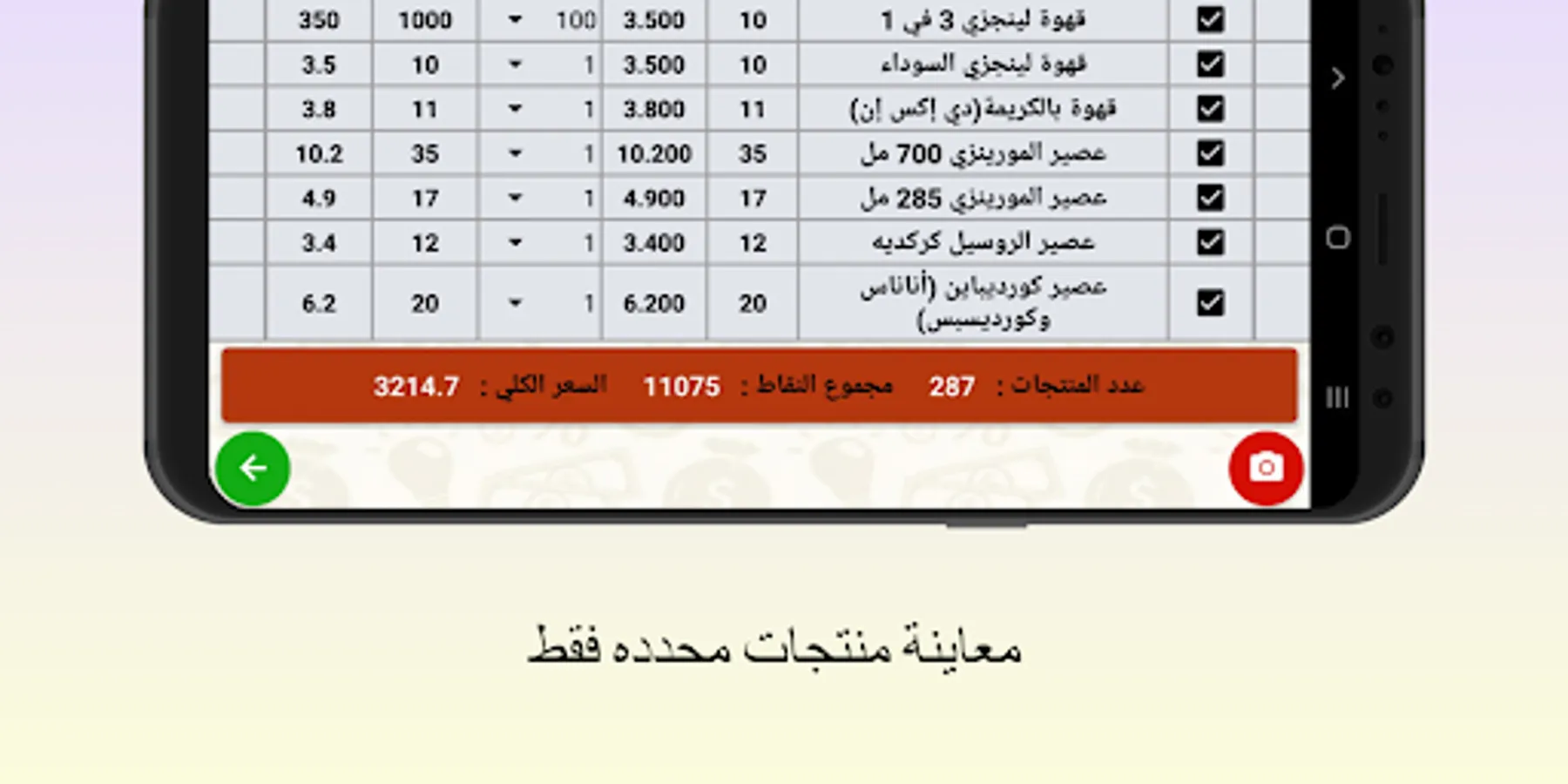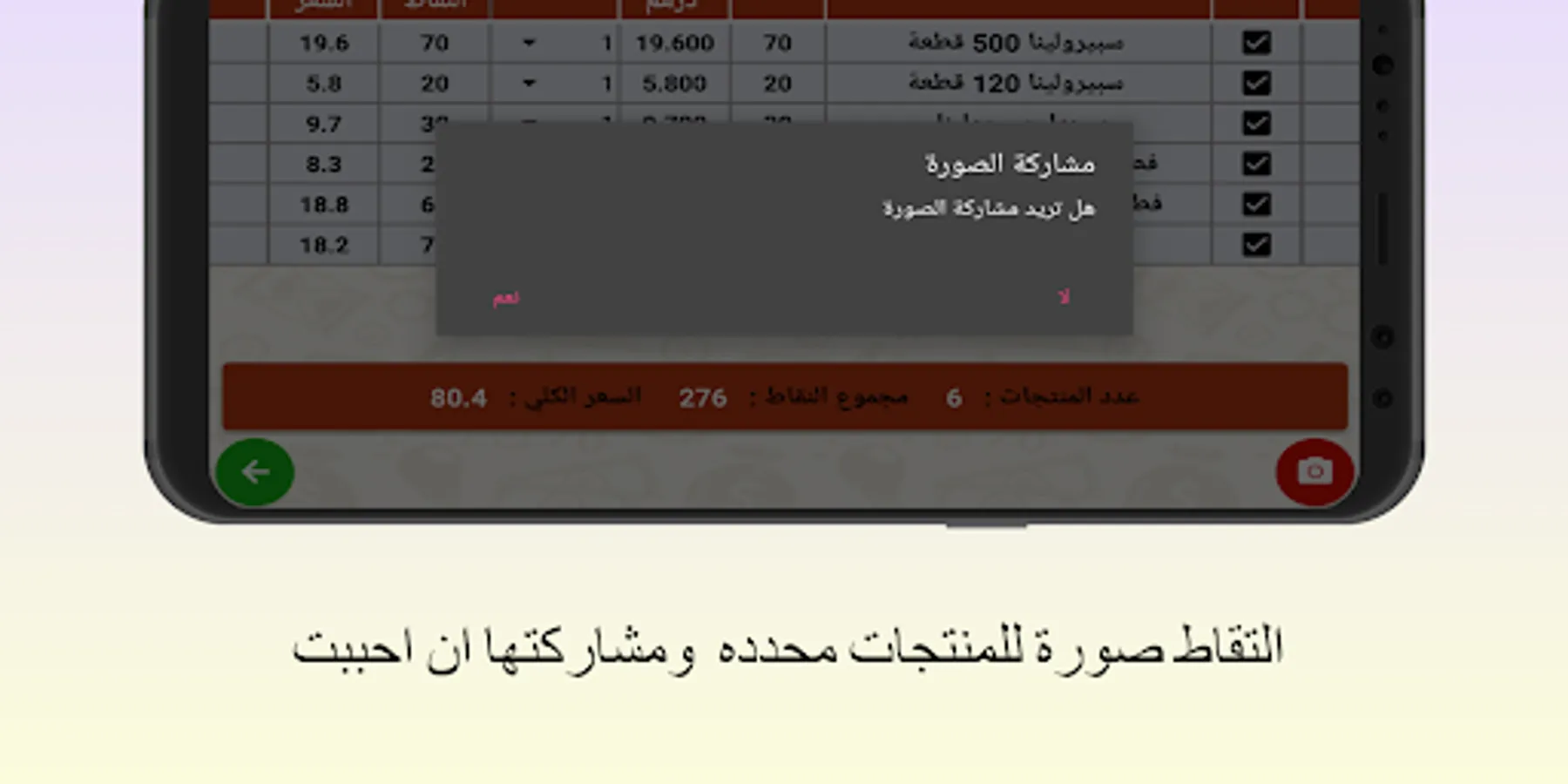 - Preview selected products, take a picture of them, automatically save them in files, and share them if you want