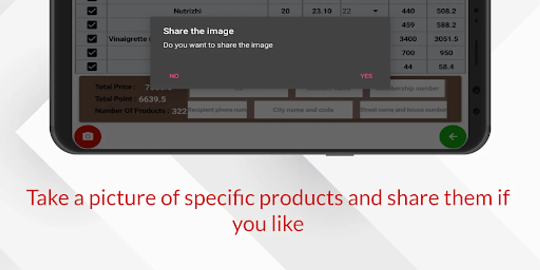 - Preview selected products, take a picture of them, save them automatically in files and share them if you want