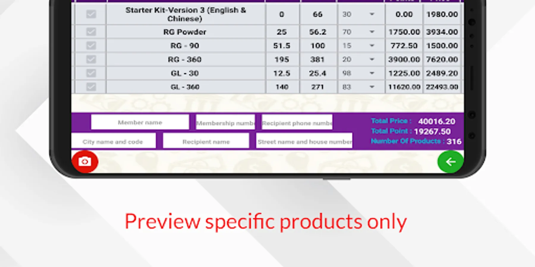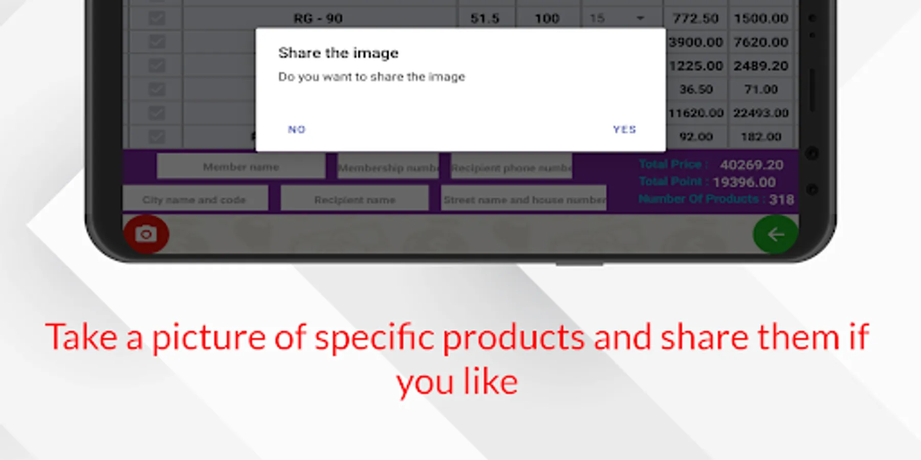- Preview the selected products, take a picture of them, automatically save them to files, and share them if you want