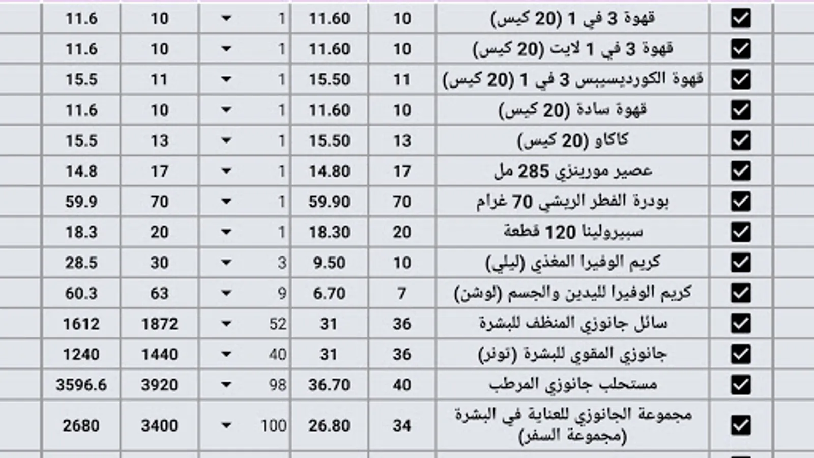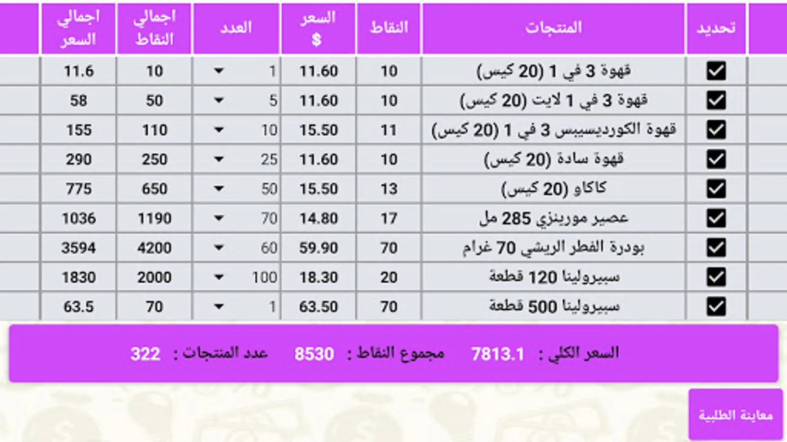 Knowing the prices and points of all products in Palestine