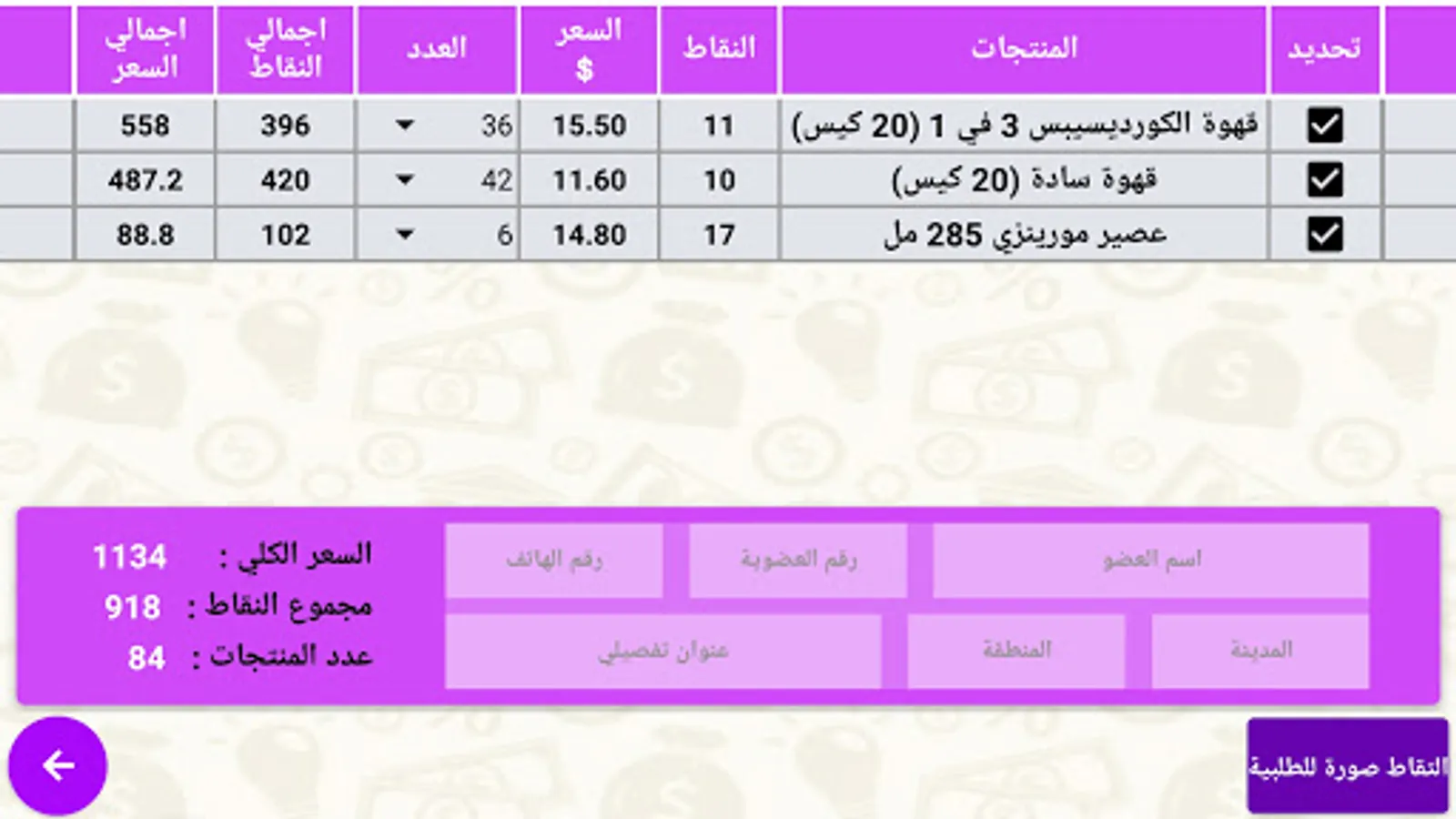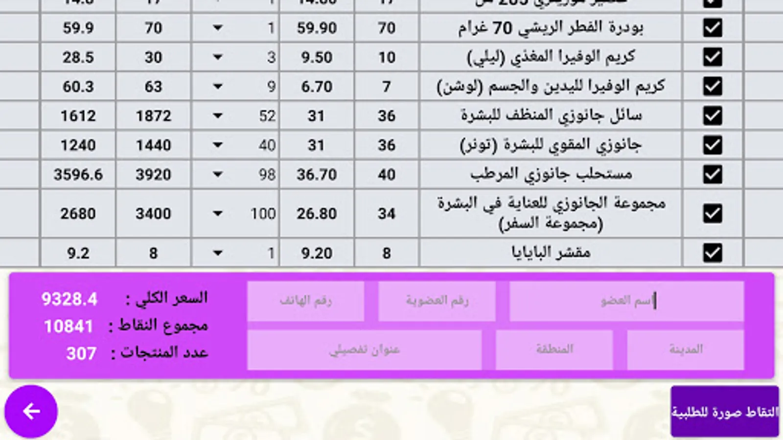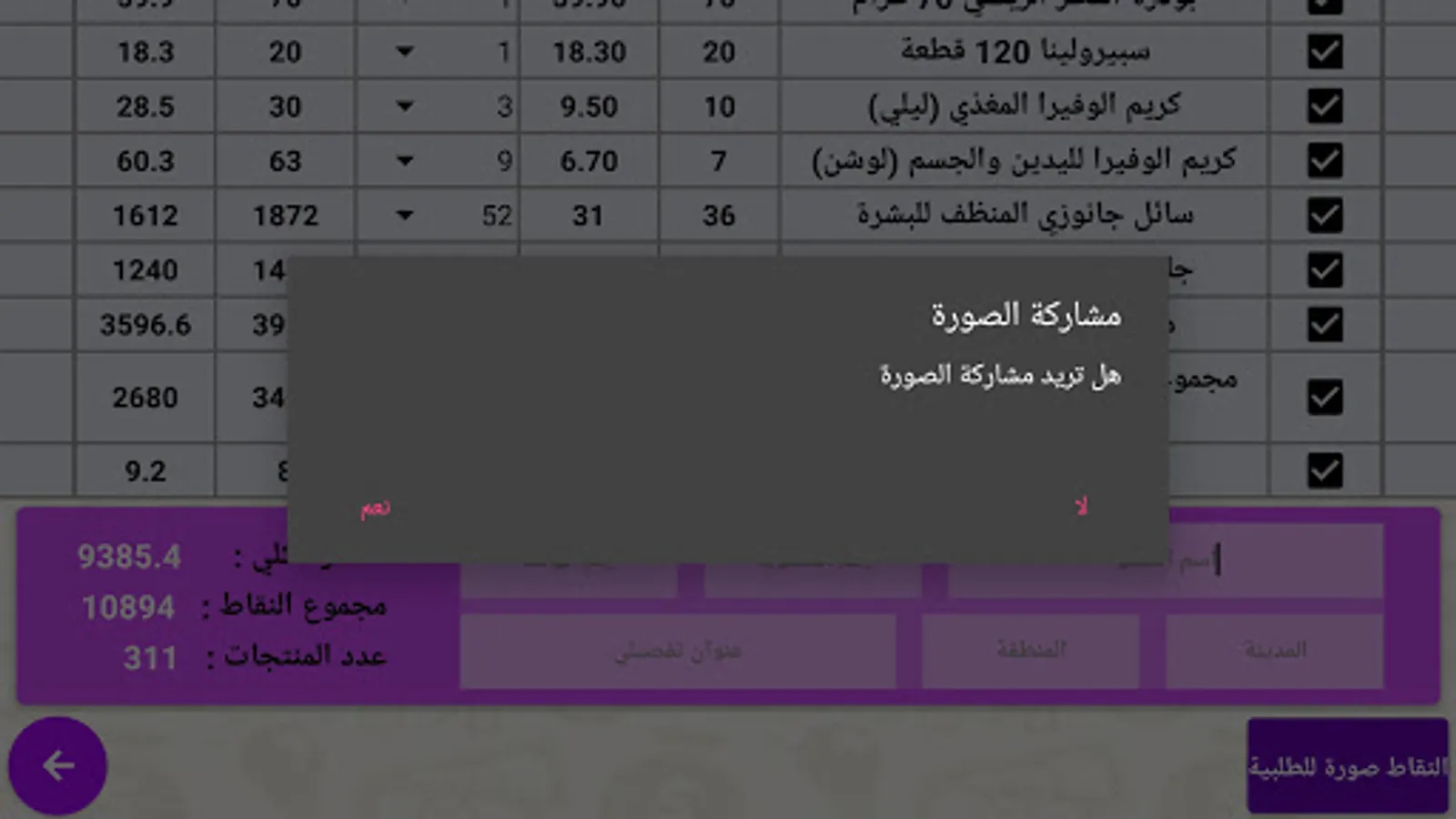 - Preview the selected products, take a picture of them, save them automatically in files, and share them if you want