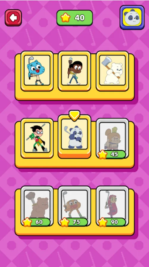 Besides the play locations, you will also meet some typical characters from four famous movies. By clicking on the right corner of the screen, you can choose as much as you want. Some characters are free and some characters need to be unlocked by exchanging stars.