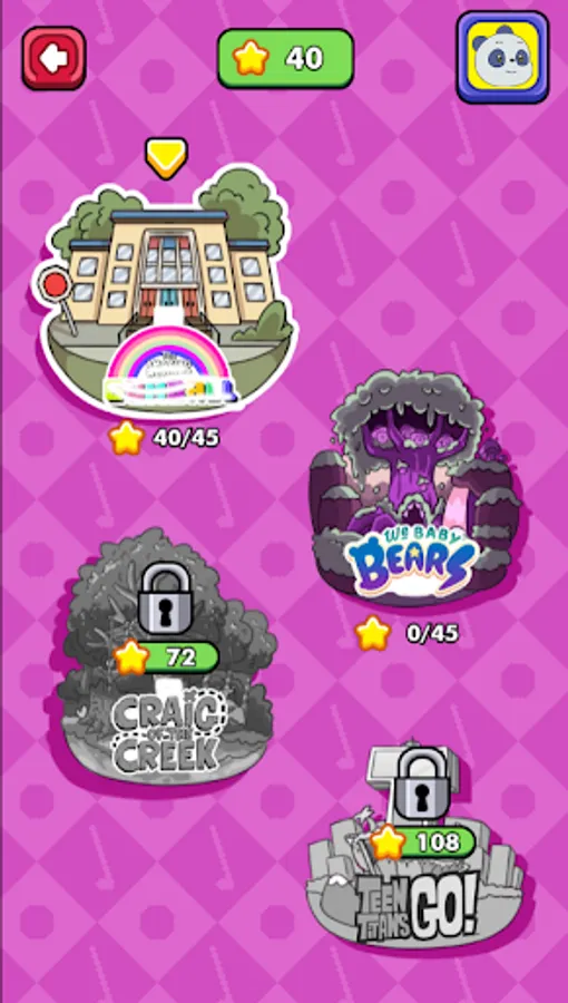 The four different locations correspond to four different movies The World of Gamball, WeBare Bears, Craig ofthe Crek Ten Titan''s Goo And to unlock these locations, you need to collect the stars of the current location. Trying to complete all three stars will help you unlock new locations faster.