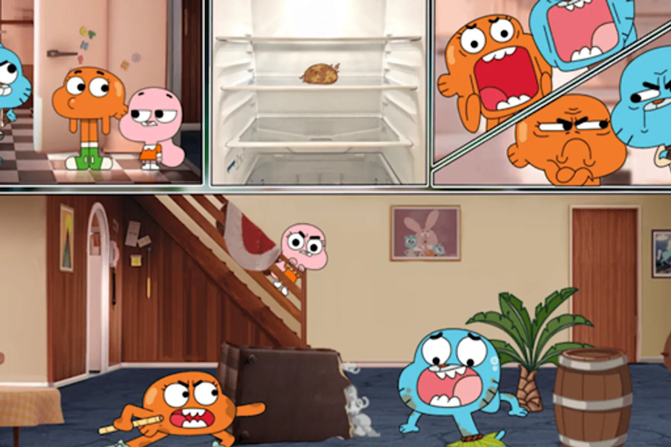 It seems that Gumball, Darwin, and Anais’s parents left out in the city for a while, and for them, it’s already the apocalypse, as they think they will be left alone and have to survive, which is the story of this game. Help Gumball and Darwin survive being home alone! Walk around with Gumball and rattle things to find items out of them, such as the bushes, the totem, the rug, and any other things around the house. Use said items to build a tent, a medicine room, an arcade game, a fire, and other necessary things! Make sure to take care of both your lives and your food rations, because if you were to lose them all, you also lose the game.