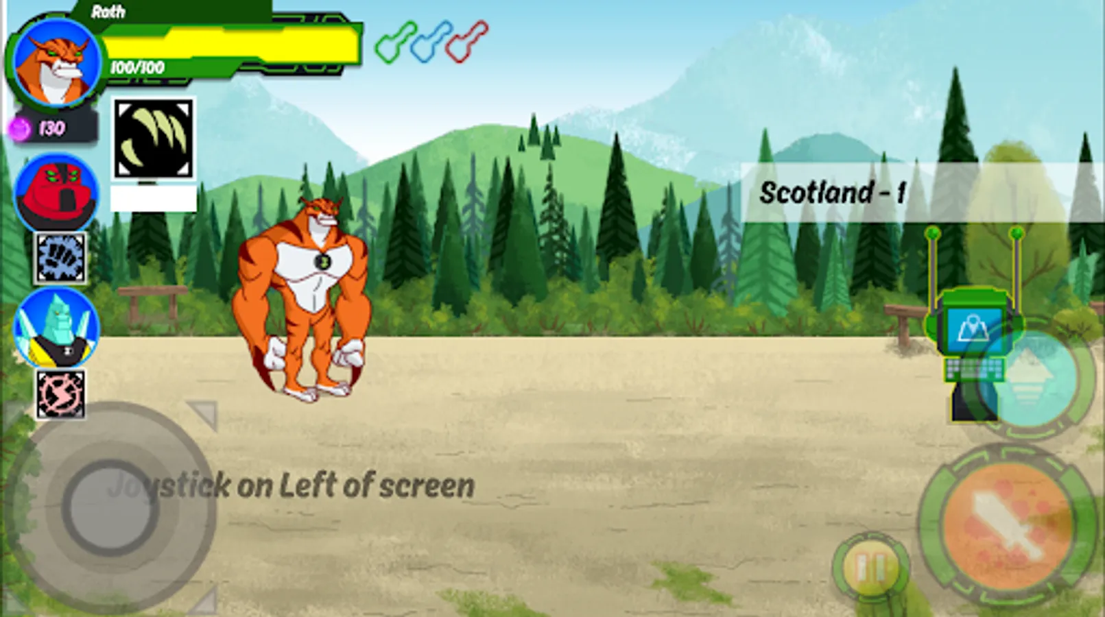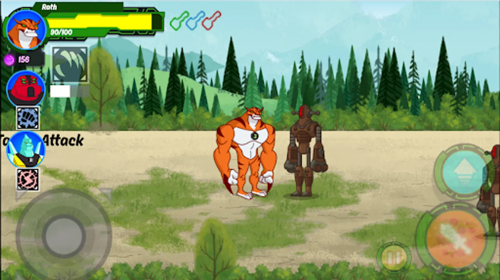 For the more exciting part, namely, the attacking, you will mostly use the Attack button. You can also use the button magic to launch a special attack. Each one is unique to the alien you are transformed into. However, try not to abuse the last one because it requires quite a long time to recharge. If you use it recklessly, you will regret it at some point!