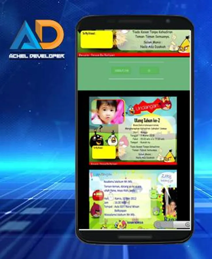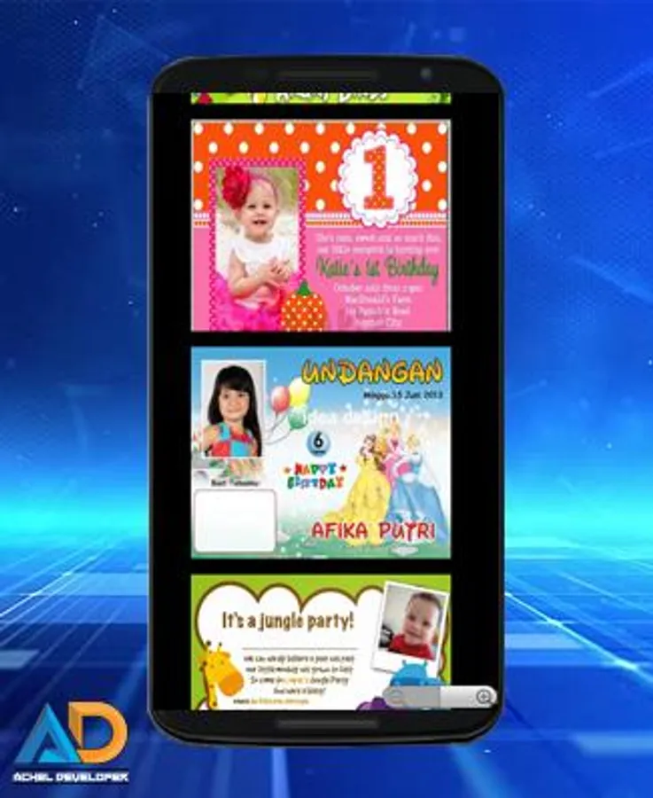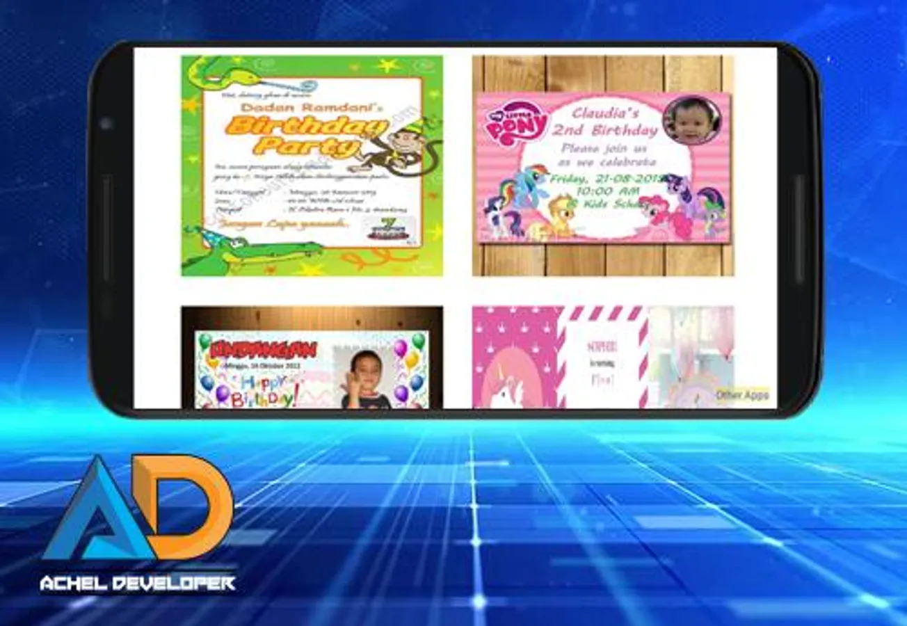 Are you looking for a template for your child's birthday invitation card? Congratulations! You are in the right application. This birthday invitation card template is suitable for you who are looking for a unique, beautiful and economical invitation card template. Yes! A cute picture template that you can copy.
