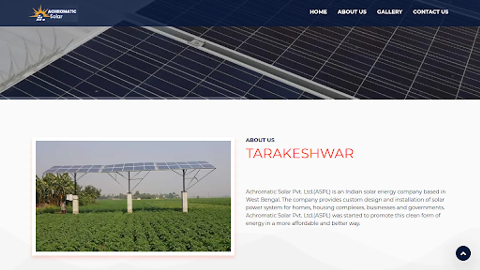 Achromatic Solar Pvt. Ltd.(ASPL) is an Indian solar energy company based in West Bengal. The company provides custom design and installation of solar power system for homes, housing complexes, businesses and governments. Achromatic Solar Pvt. Ltd.(ASPL) was started to promote this clean form of energy in a more affordable and better way.
