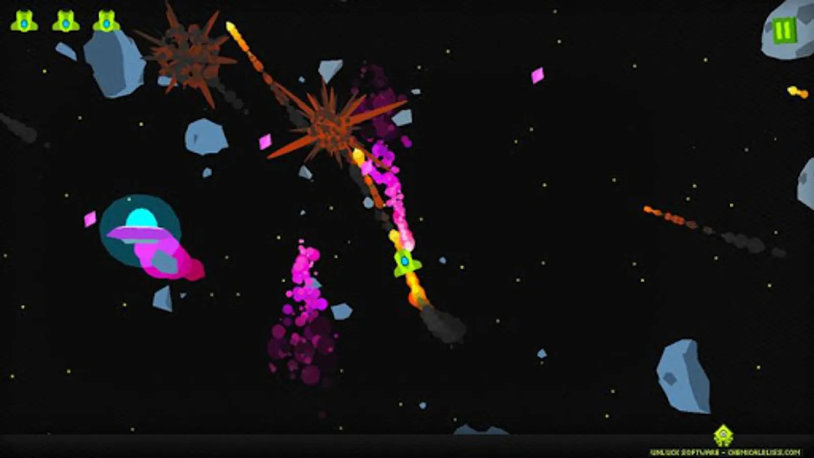 Shoot asteroids and UFO's in space. Play levels in varied difficulties or endure endless game play in survival mode.