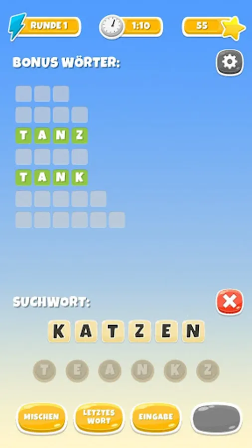 In this game you have to make as many words as possible out of the letters.