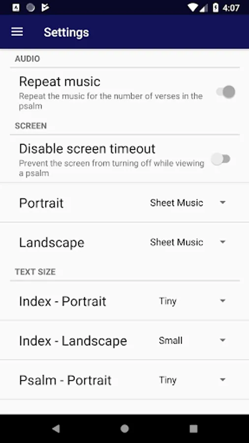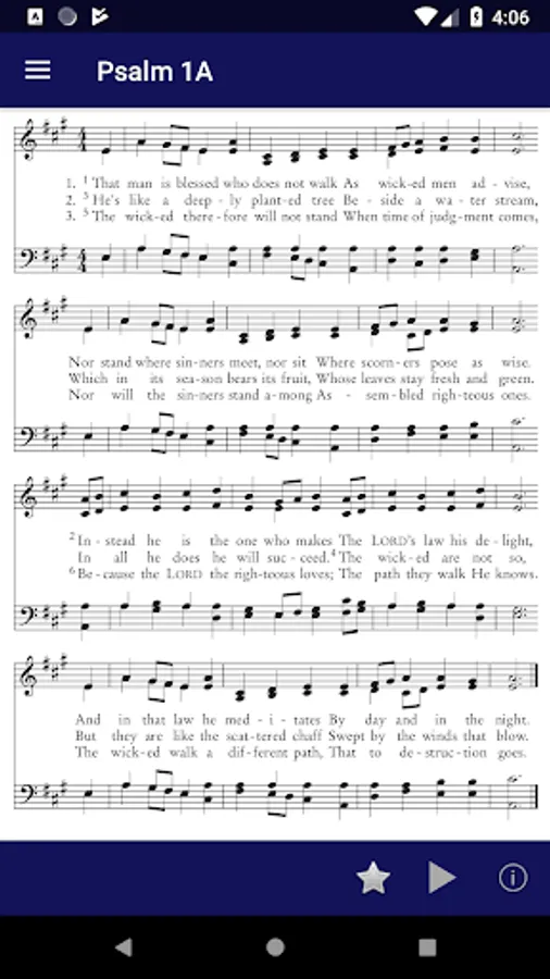 • Sheet music*, audio, text, and tune info for each psalm