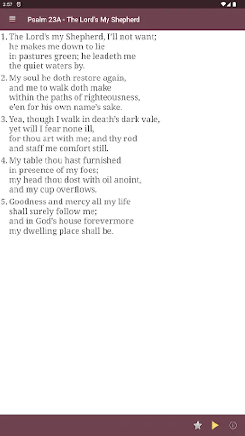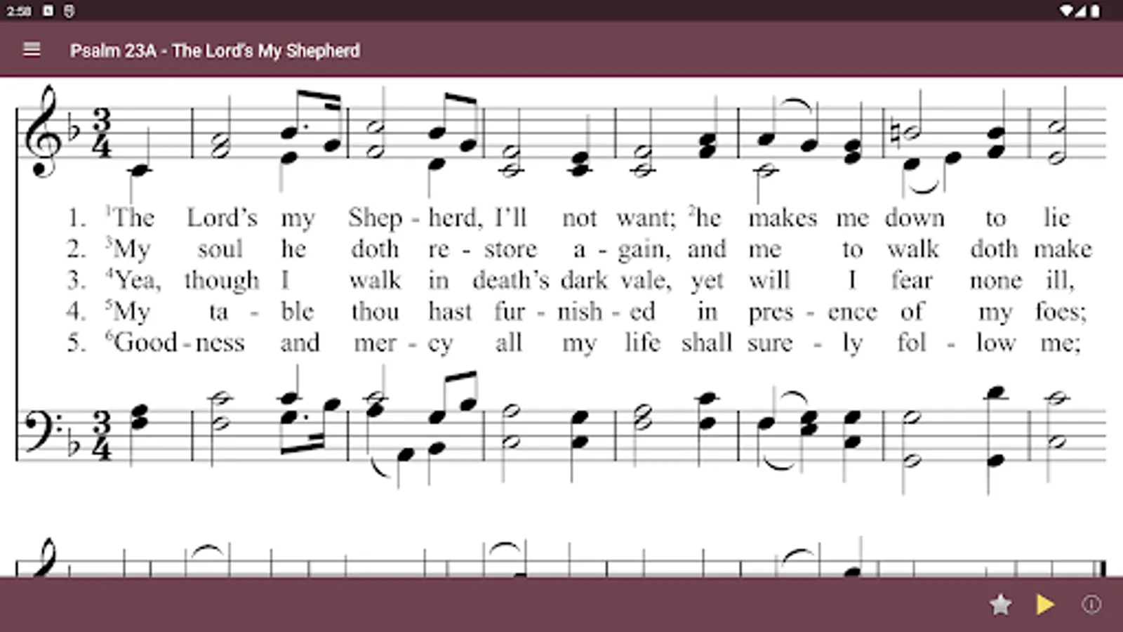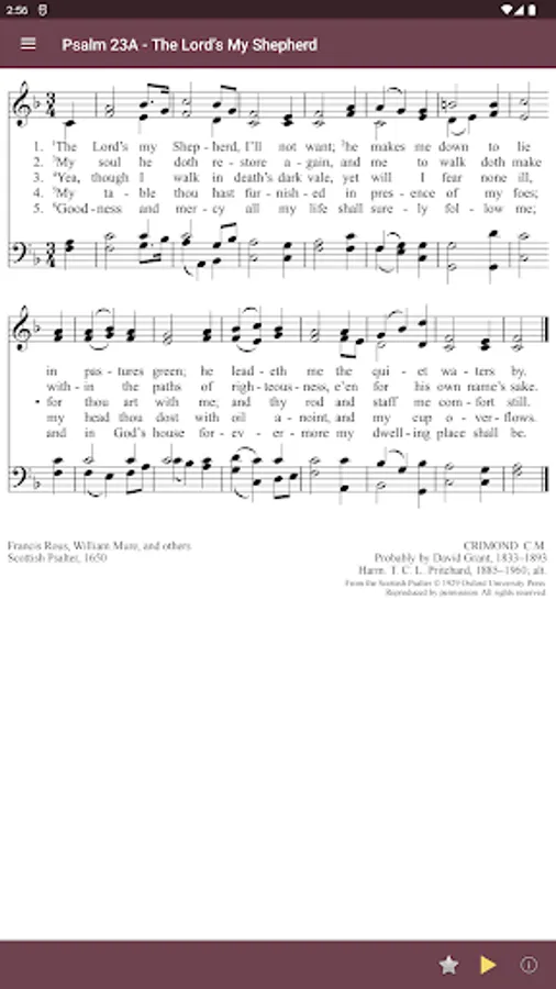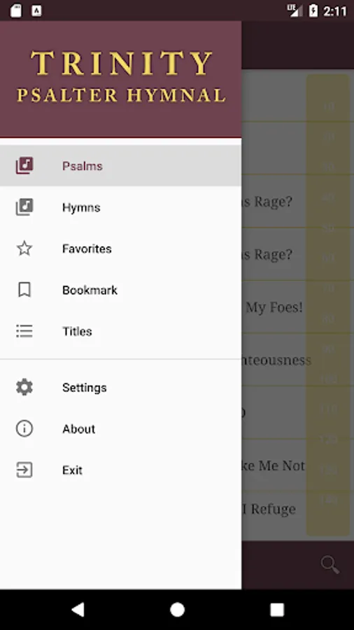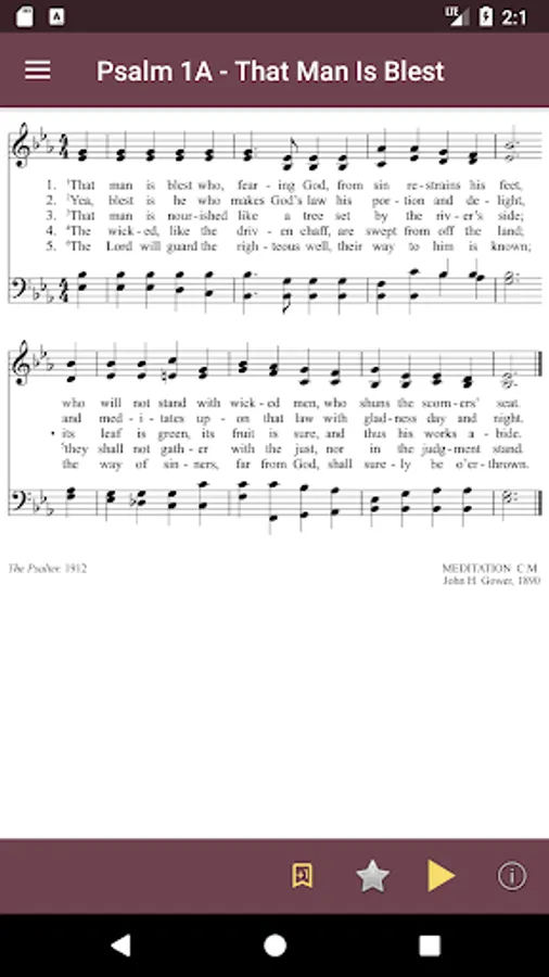 Intended as a supplement to the print and digital editions of the Trinity Psalter Hymnal (https://www.trinitypsalterhymnal.org/), the Trinity Psalter Hymnal app features the full text and music of the songbook, as well as tune recordings (professional and high-quality MP3 recordings to come soon in a future upgrade). Some key features of the app include: searchable full text, browsable title and first line index, favorite songs list, advanceable bookmark for working through the songs one by one, and looping of a tune for the number of stanzas in each song. The mobile app is a great resource for planning worship, learning new songs, and singing along in family devotions.
