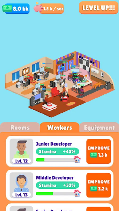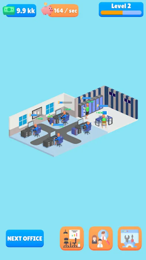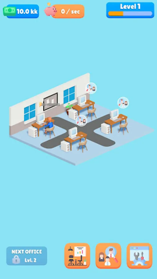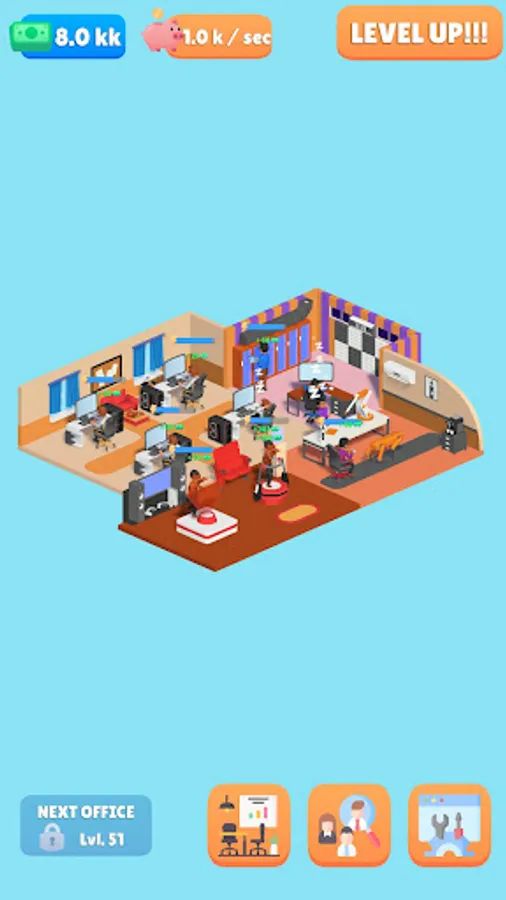 - Upgrade office levels and earn rewards