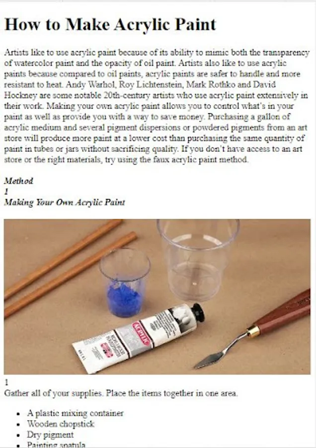 Acrylics combine the best of oil paints—creamy texture, opaqueness,ability to blend smoothly,vibrant colors—with the best of watercolors—quick-drying,water-soluble, easy clean-up—for paint that works on most surfaces.