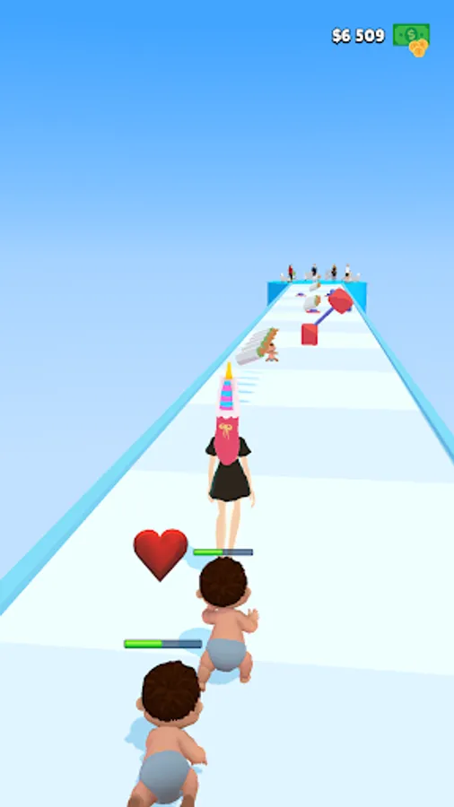Children love their babysitter so much that they follow her without question. Feel the responsibility of parenting. It depends on the nanny in which direction the baby crawls. Try to prevent the baby from falling into the lava, beaten with a hammer, and crushed by spinning obstacles. Every mistake is reflected in the children. They become smaller and weaker due to errors.