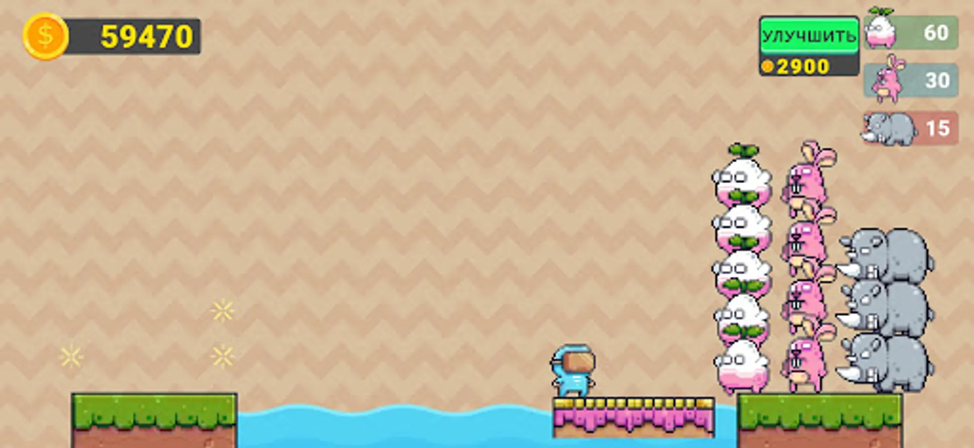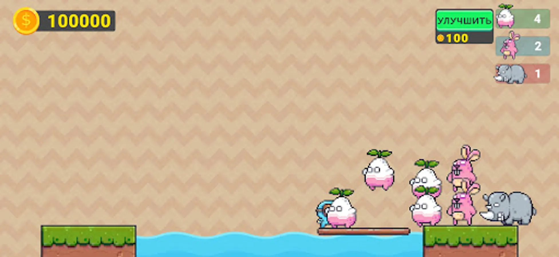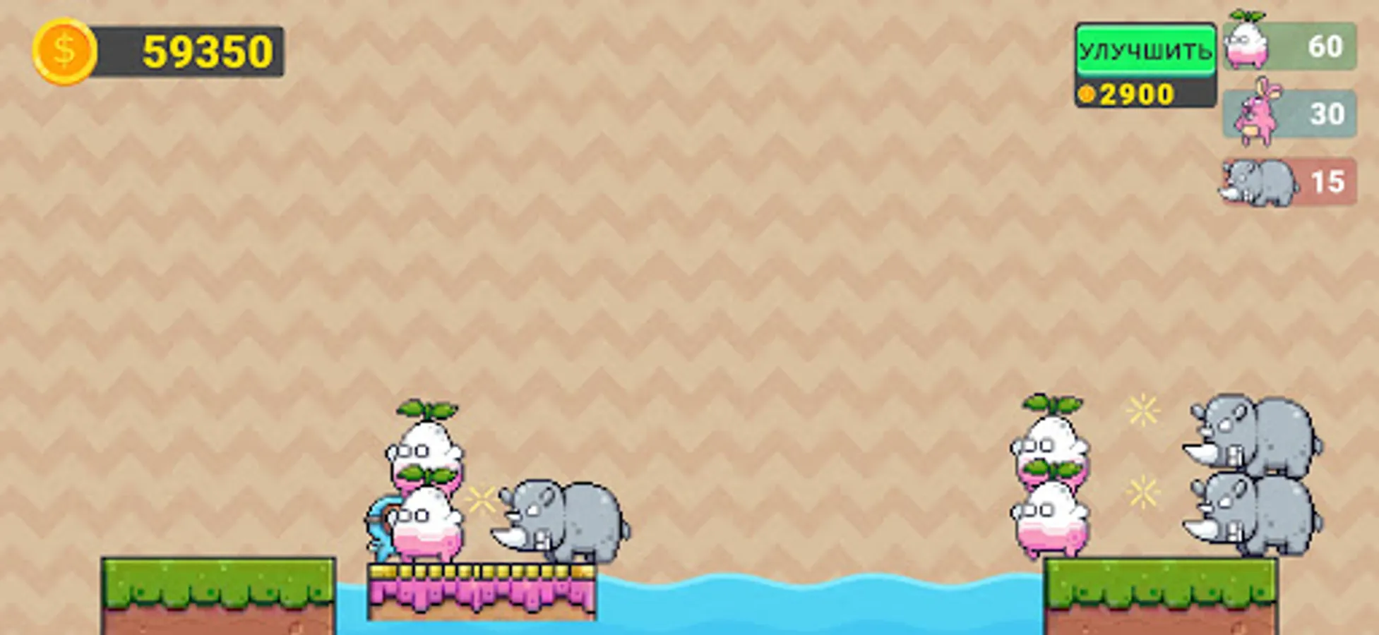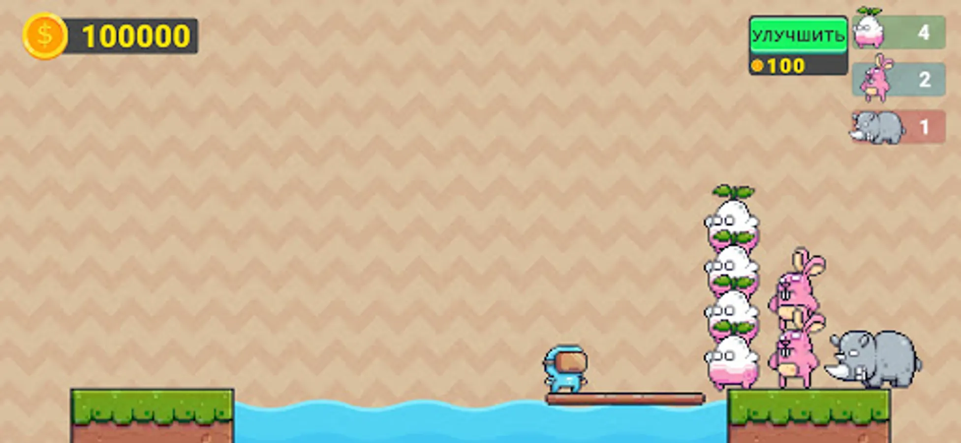 Каждое успешно перевезенное животное превращается в деньги, которые вы можете потратить на улучшение вашей лодки. С прокаченной лодкой вы сможете перевозить еще больше животных, чем раньше, и построить еще большие башни.