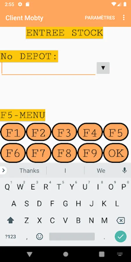 Display emulation of RF601 or Windows CE terminals.