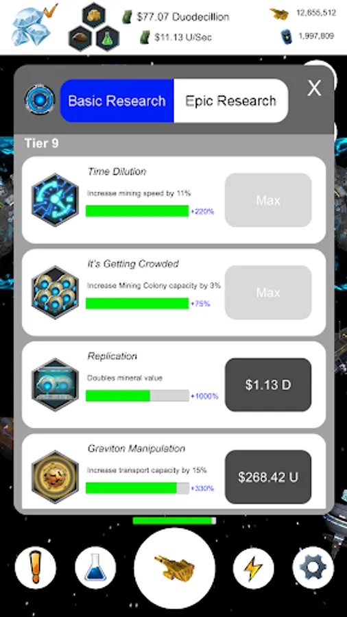 18 unique mining colony upgrades, 10 unique freighters, and 17 mineral levels!