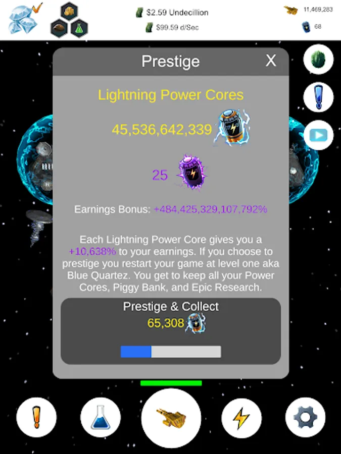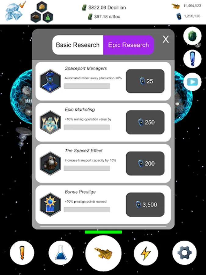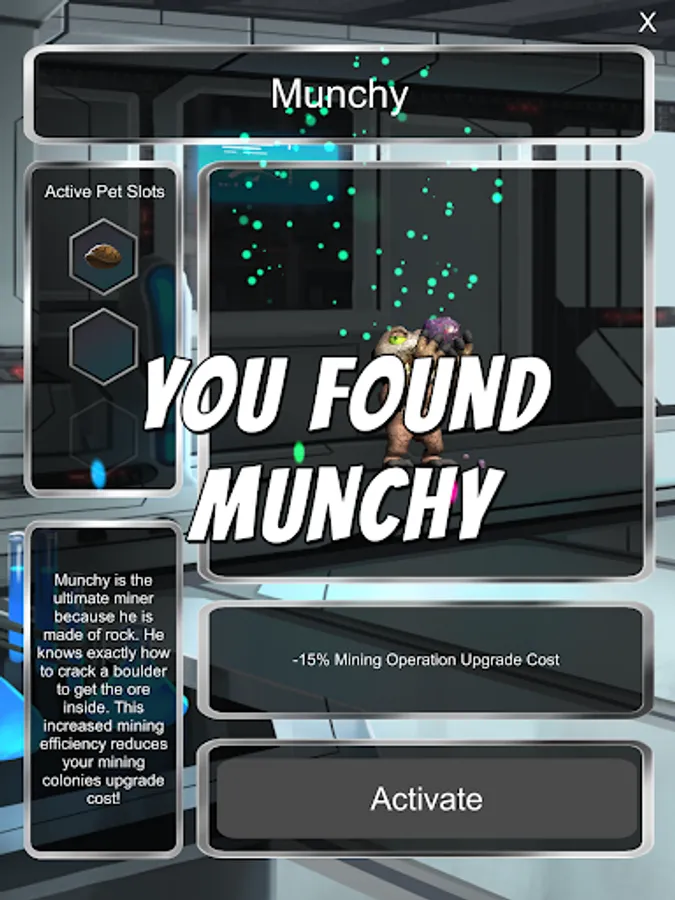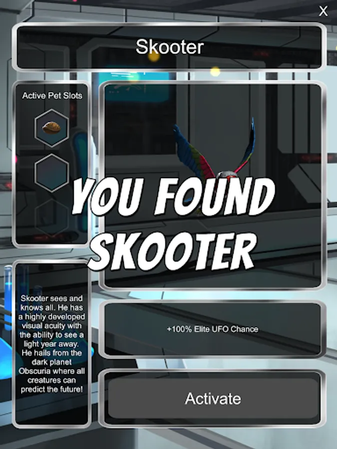 12 pets to collect each with it own unique bonus! Stack bonuses to make space bucks faster!