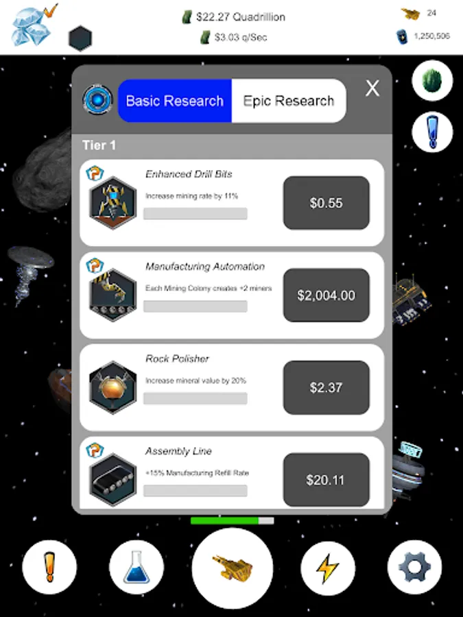 Space LLC the asteroid mining game that’s easy to learn and provides hours of fun! Build miners, grow your mining colonies, research new upgrades, level up to unlock new minerals, discovery rare pets and earn trophies! Do you have what it takes to build a space mining empire?