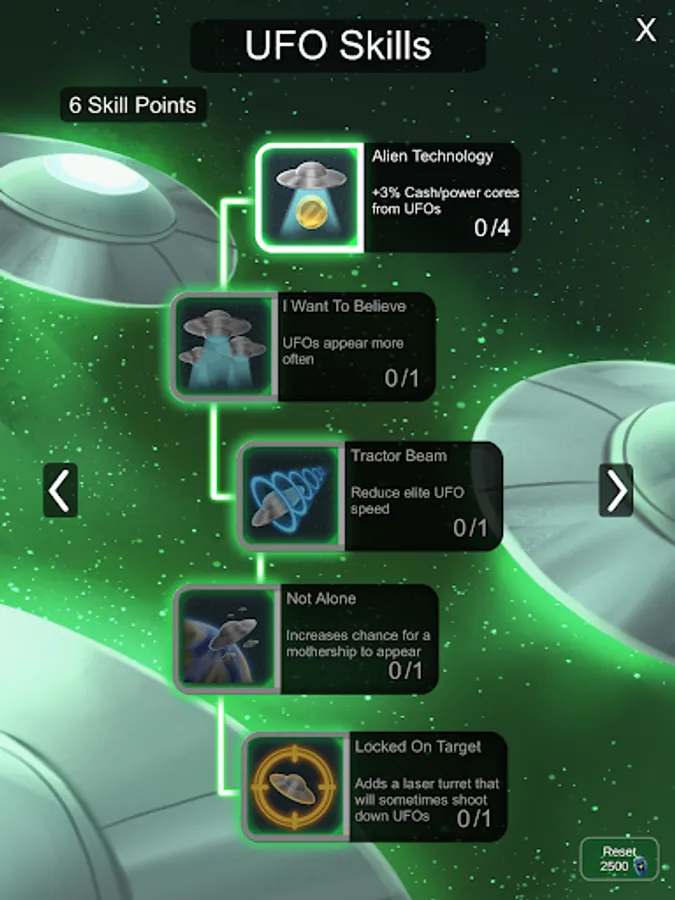 Skill tree allows you to customize your play. Select active or passive bonuses! 4 trees to choose from!