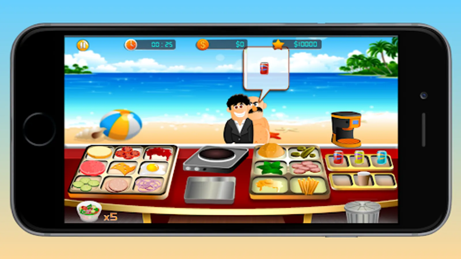 In this game you have to serve and cook the food for your customer which are waiting for you so you can cook for them according to their demands and you can serve them and make money!
