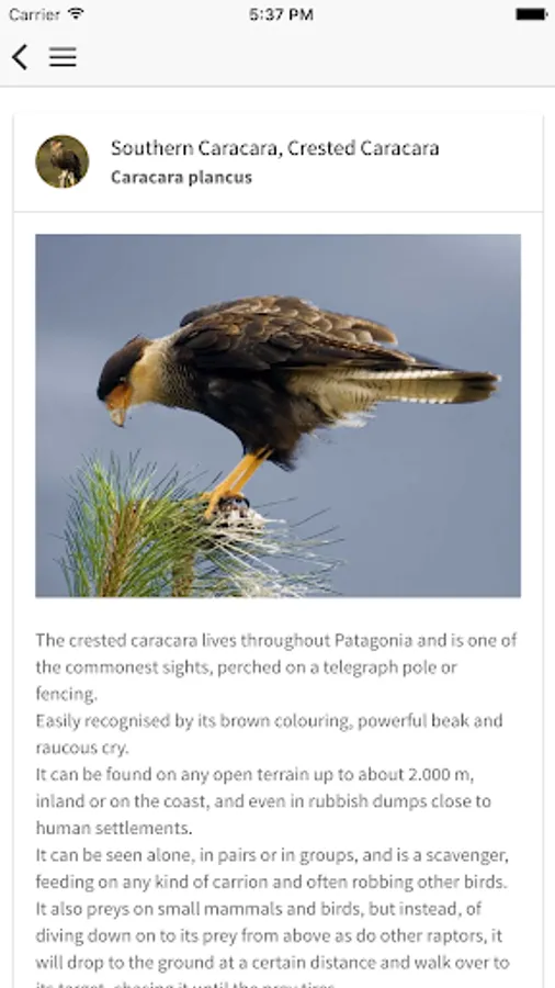 An ideal app for experts and simple tourists alike: birds in Patagonia are far less shy than in Europe or North America, so you can get much closer!