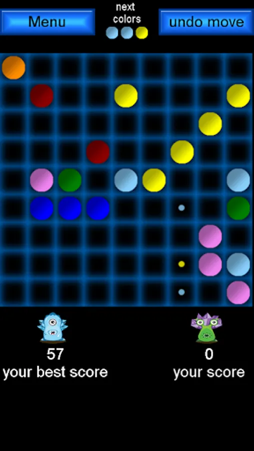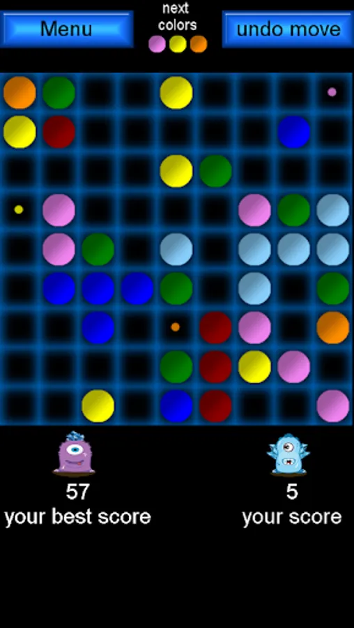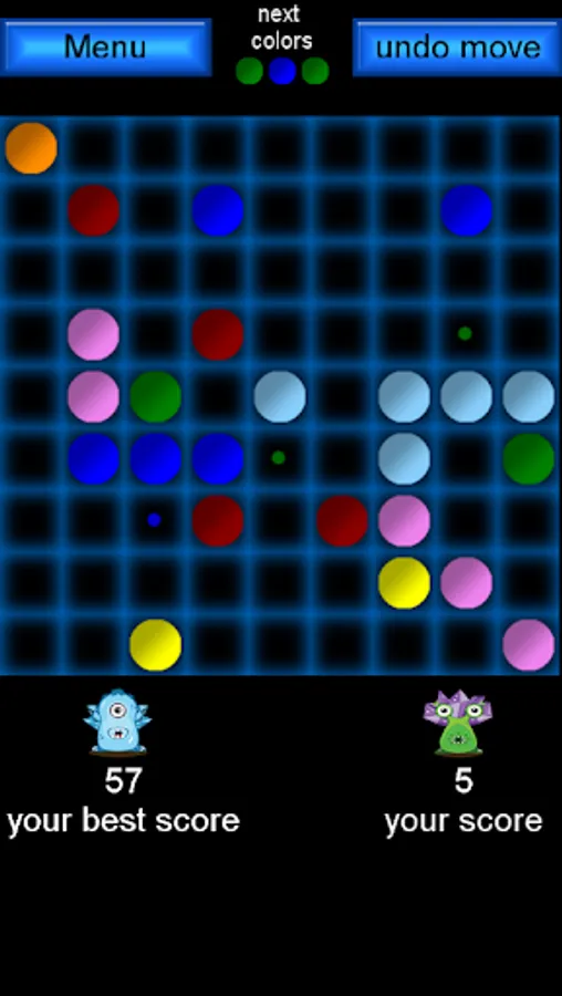 The game consists of a 9 × 9 squares playing field and is played with balls in seven different colors. At launch, five balls are randomly distributed on the field; after each turn three more.