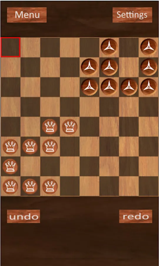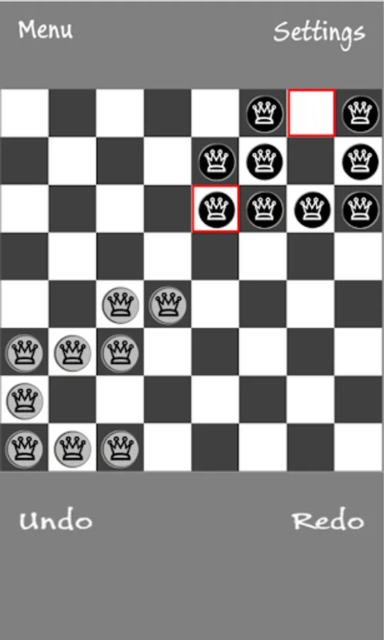 Playing equipment consists of a checkered board. Pieces are typically black and white for two-player games, and of various colours or other distinction in games of four players, placed on opposing corners of the board. The goal of the game is to transfer all of one's pieces from one's own camp into the camp in the opposing corner. Each turn, a player either moves a single piece to an adjacent open square, or jumps over one or more pieces in sequence.