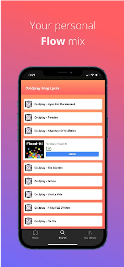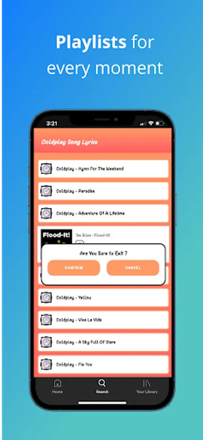 ✓ Want to play Coldplay songs easily and quickly? It's easy with our application! After selecting the lyrics you want, you can click on the play button and we will automatically open Youtube and play songs quickly.