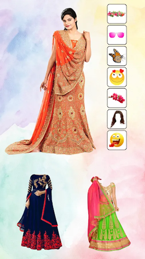Chaniya Choli Photo Suit Editor is a women dress photo editor app. It has woman chaniya choli suit collections. When you use this app, you will come to know easily within few minutes which color suit is suitable for you. By downloading this app, you will get chance to try different types of virtual women dress at free of cost.