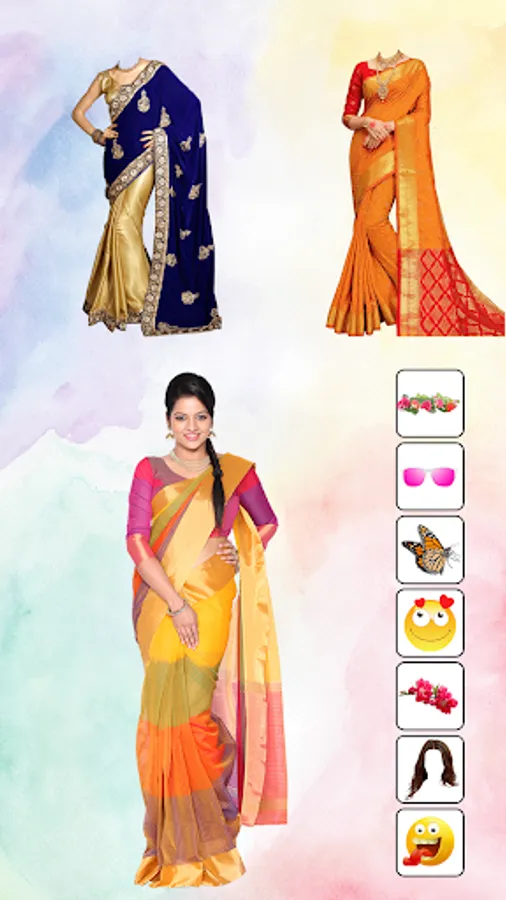 Use sticker collections in this Chaniya Choli Photo Suit Editor app. Add sticker anywhere on the picture at any angle either enlarge or minimize their size, set them on the image. Further do you want to polish it? Add color effects.