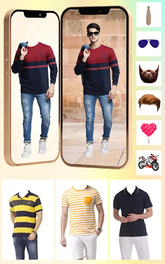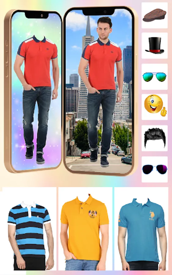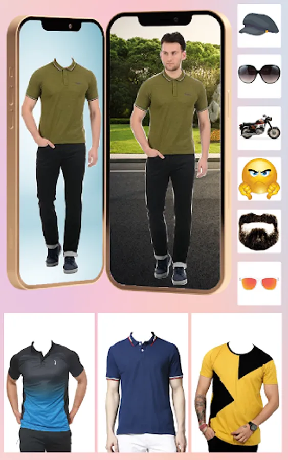 Do you want to take selfie with wonderful t-shirts? Download this Men design t shirt photo suit free app for all types of photo editing.