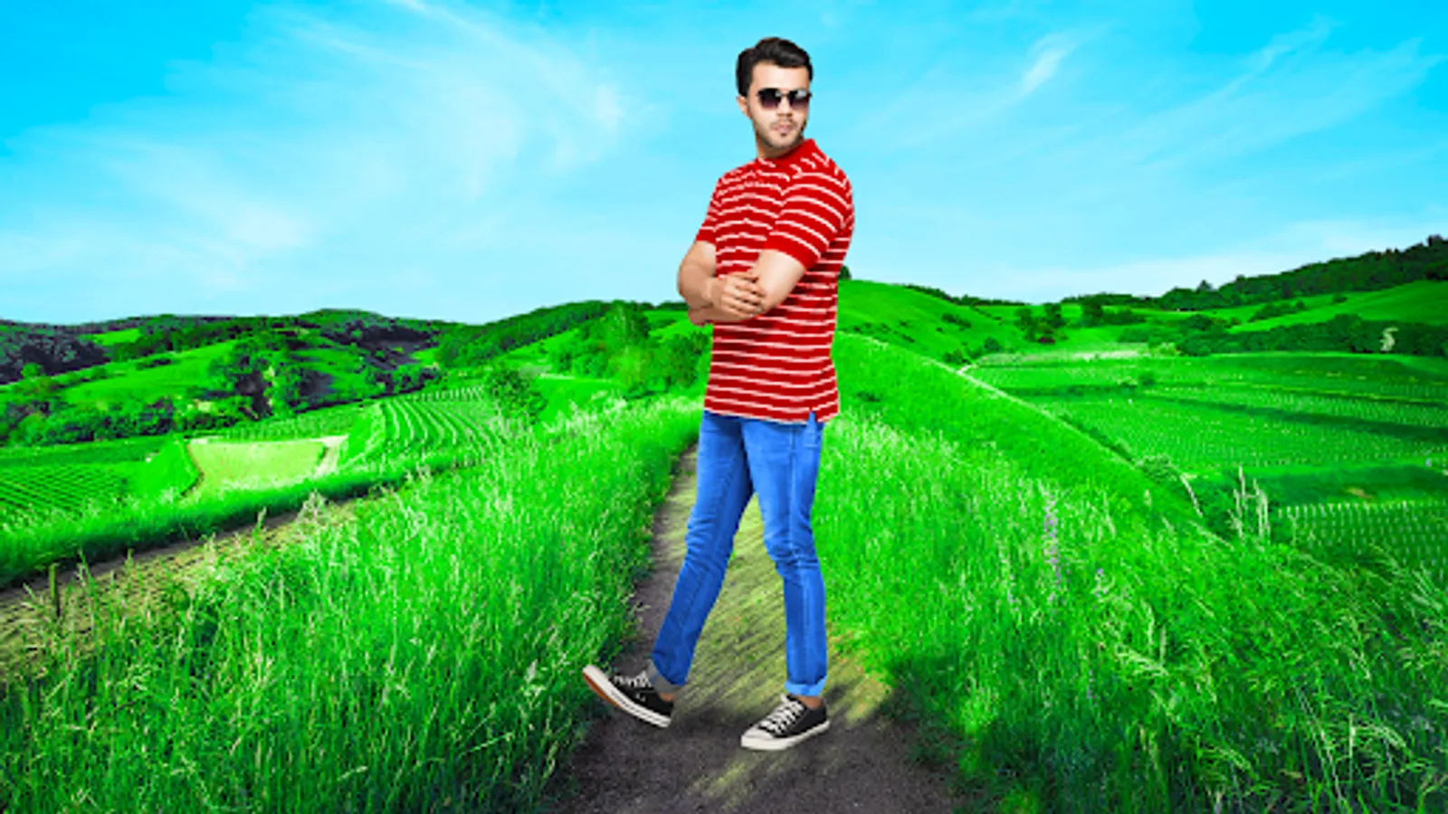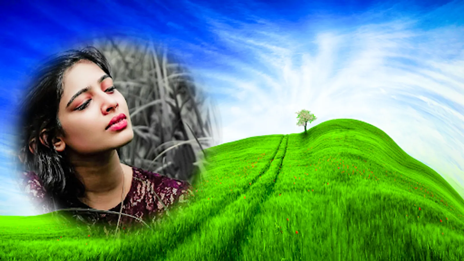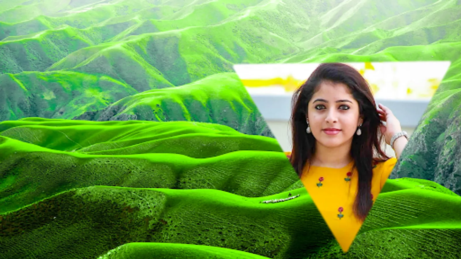 ❖ Background can be changed with beautiful images. Select and apply any stickers from the list in this green hill photo editor & frames app and drag it to the right position, rotate it, multi-touch to resize it, and fit on your pic.