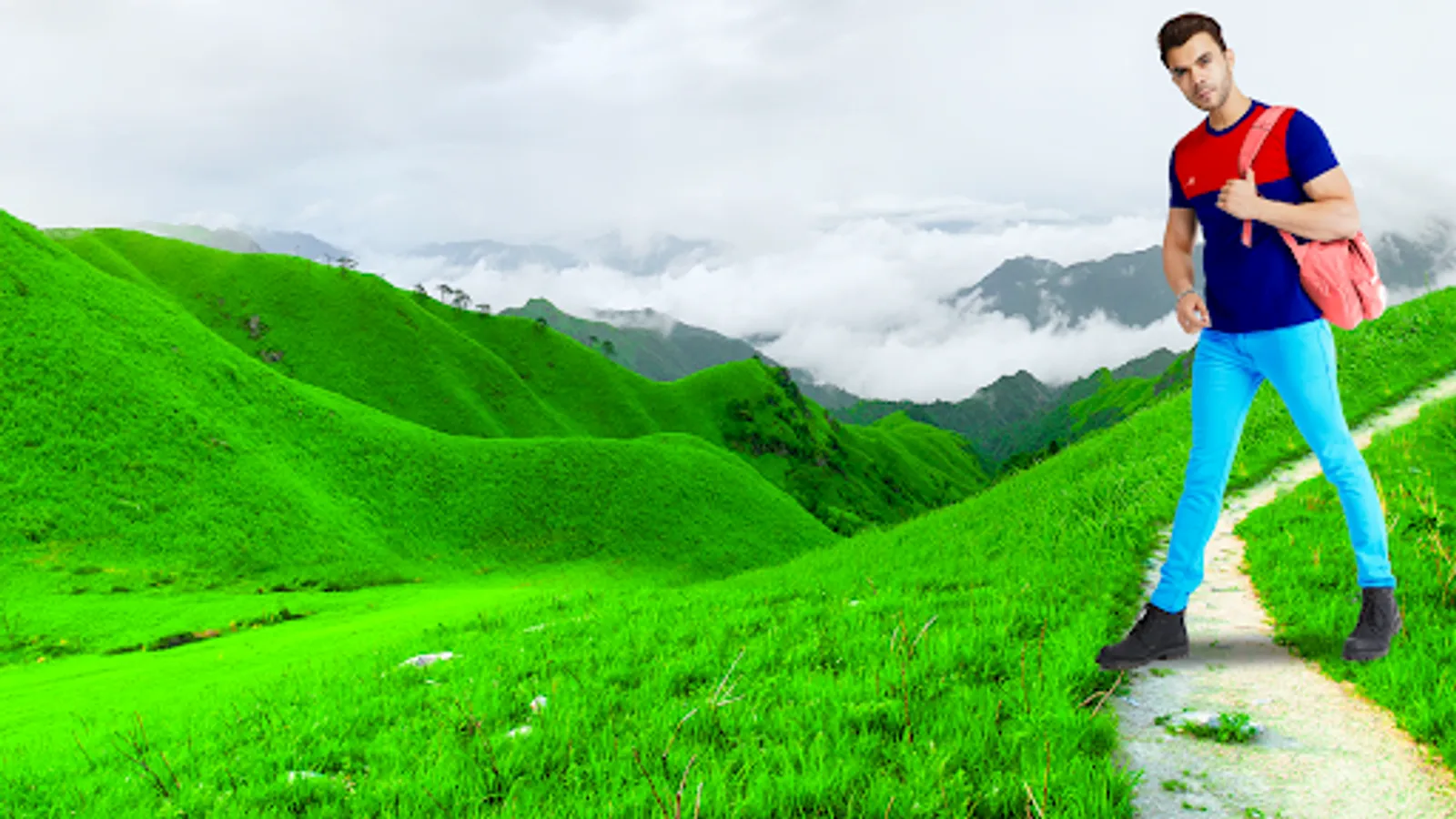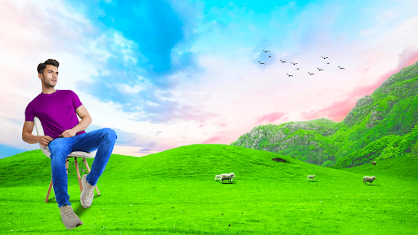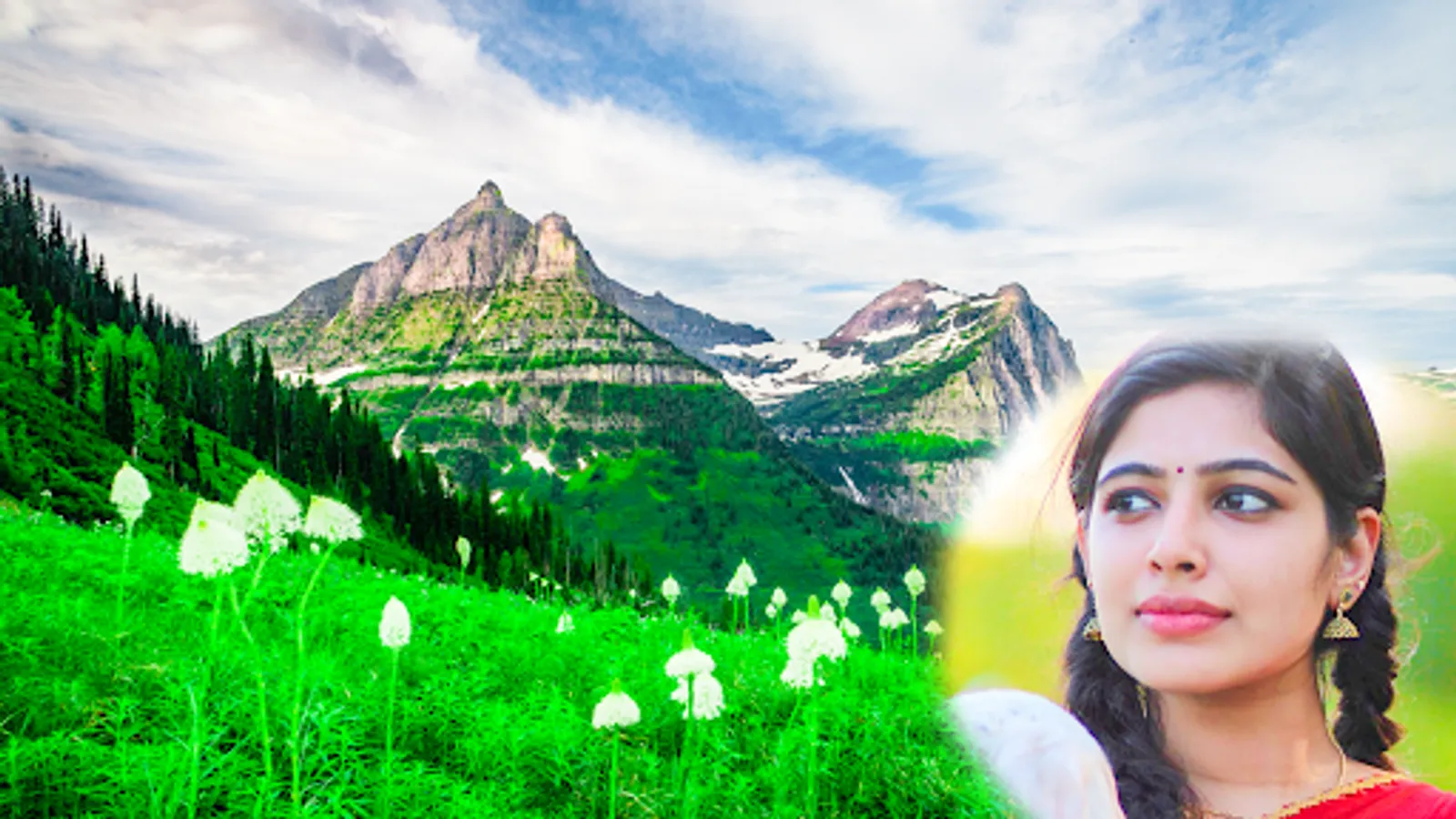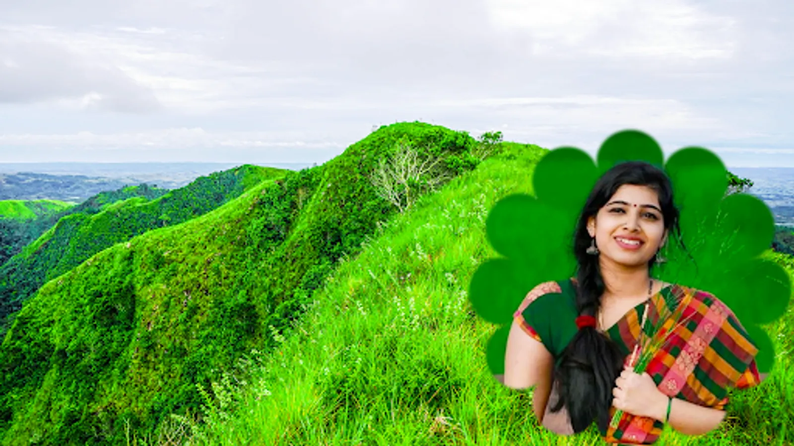❖ Background can be changed with beautiful images. Select and apply any stickers from the list in this green hill photo editor & frames app and drag it to the right position, rotate it, multi-touch to resize it, and fit on your pic.
